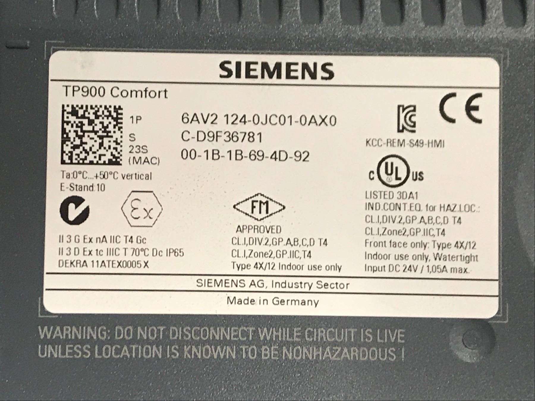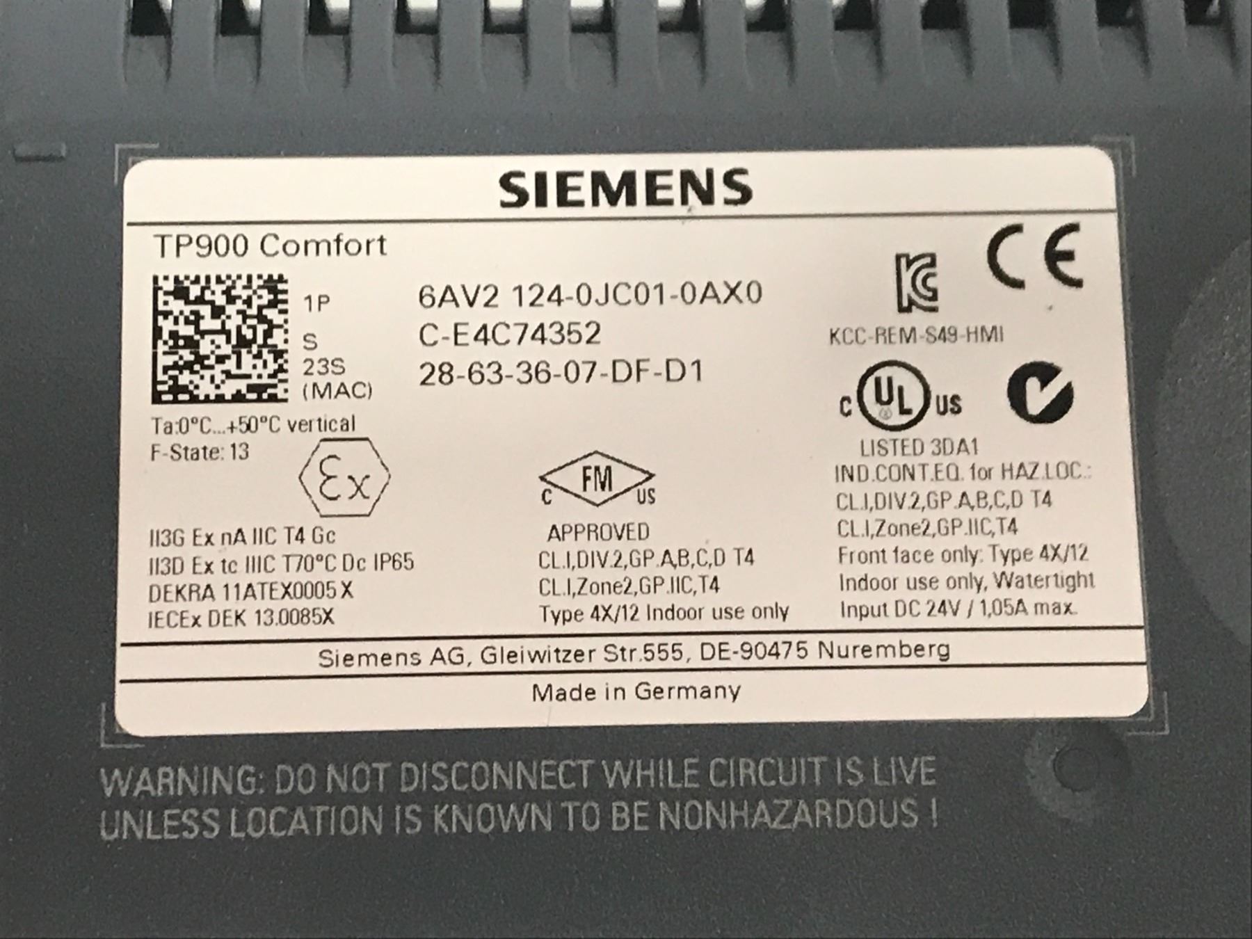 (3) - Siemens 6AV2 124-0JC01-0AX0 TP900 Comfort Touch Screens