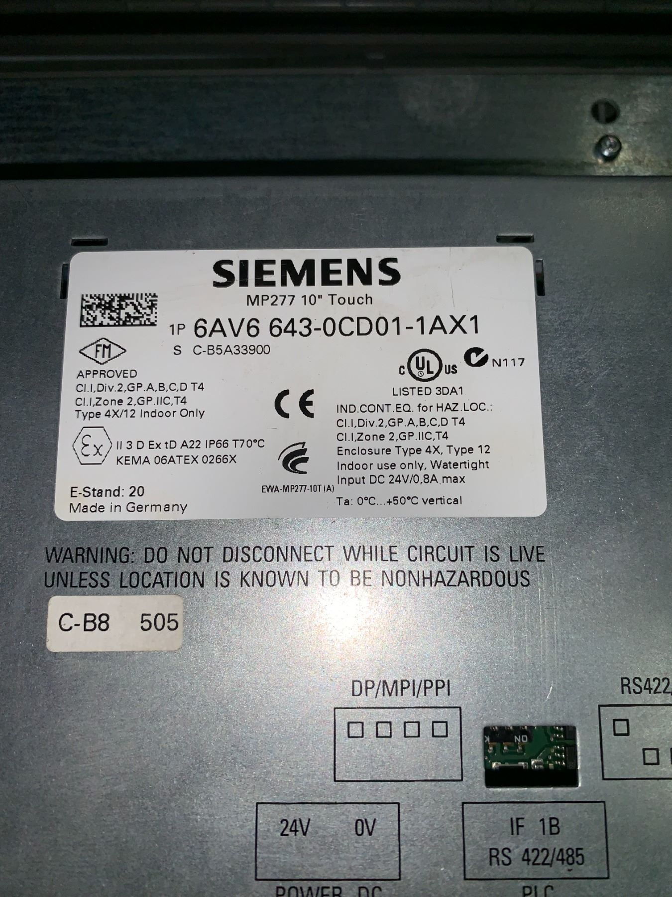 (3) Siemens # 6AV6 643-0CD01-1AX1 Screens