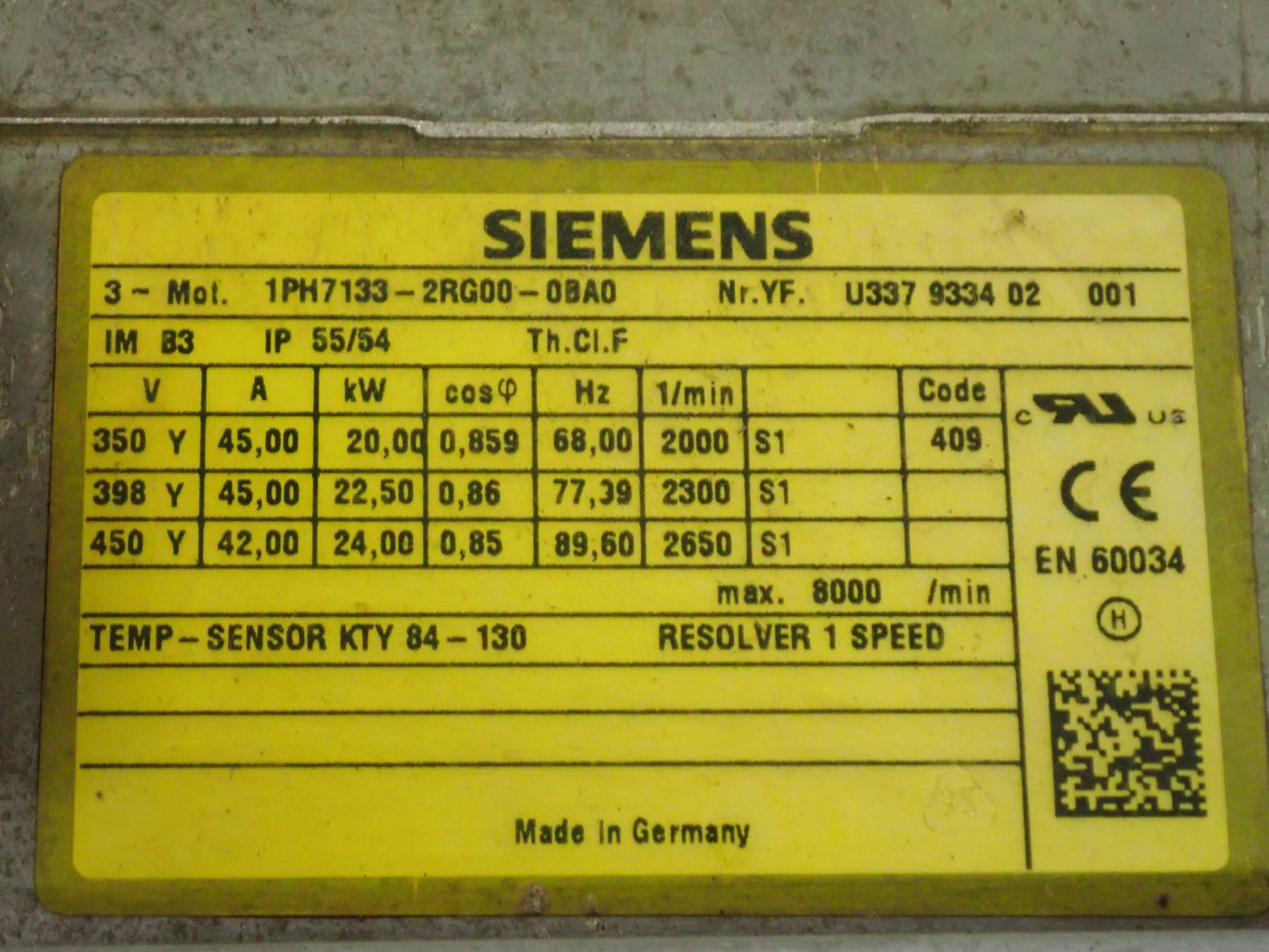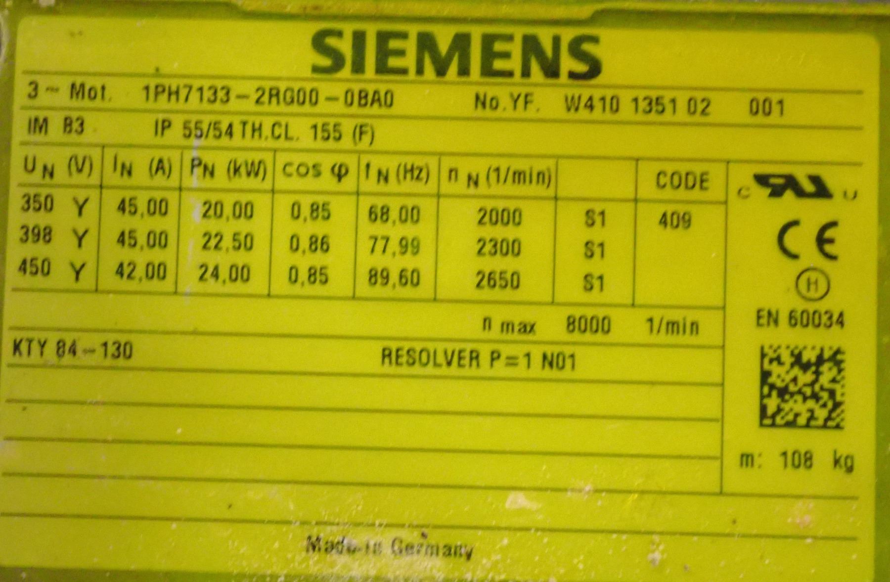 (3) Siemens Motor #1PH7133-2RG00-0BA0