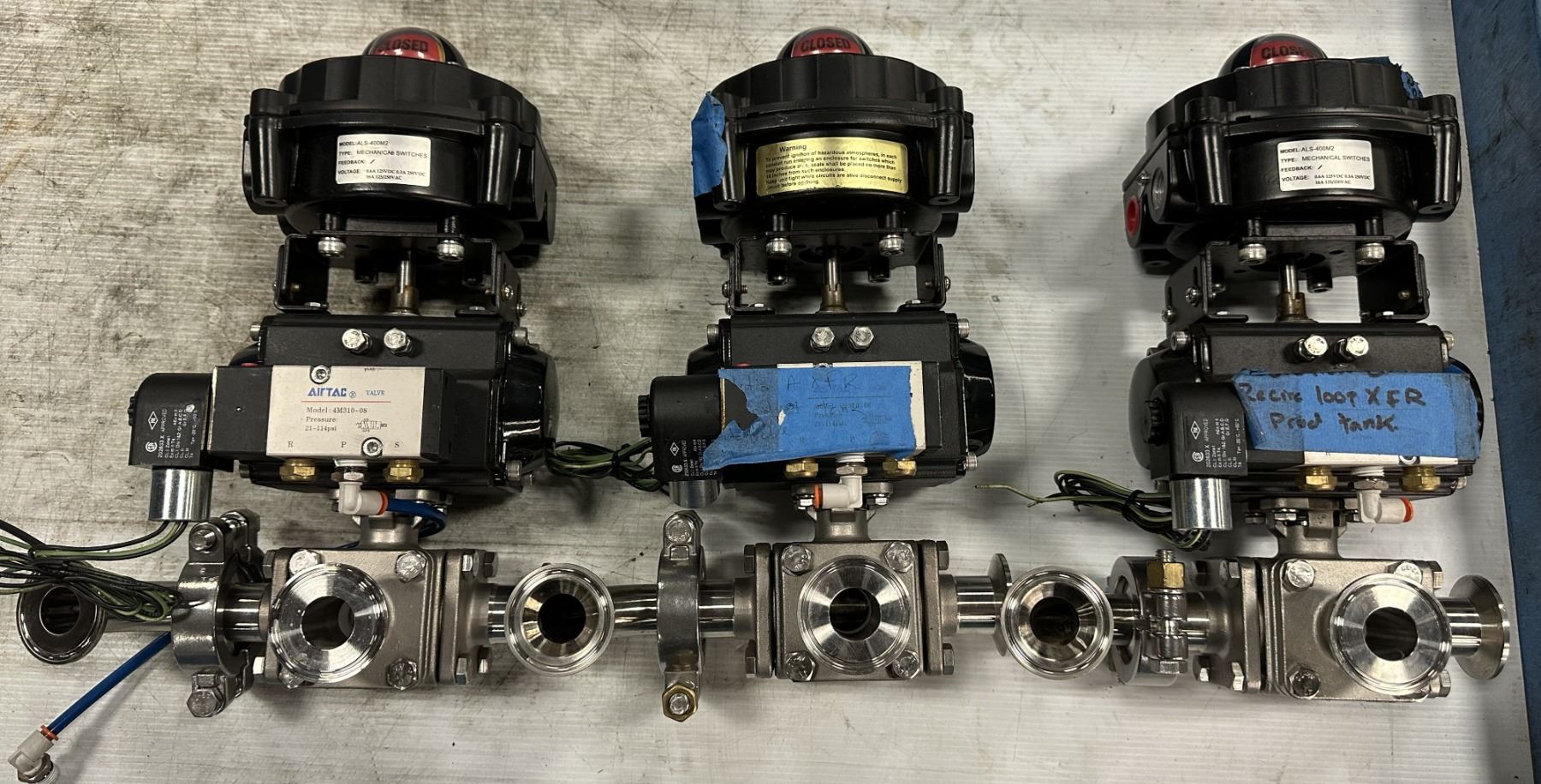 (3) Techmatic #DFS063-SR10-M-P Pneumatic Valve Actuators w/#ALS-400M2 Mechanical Switches