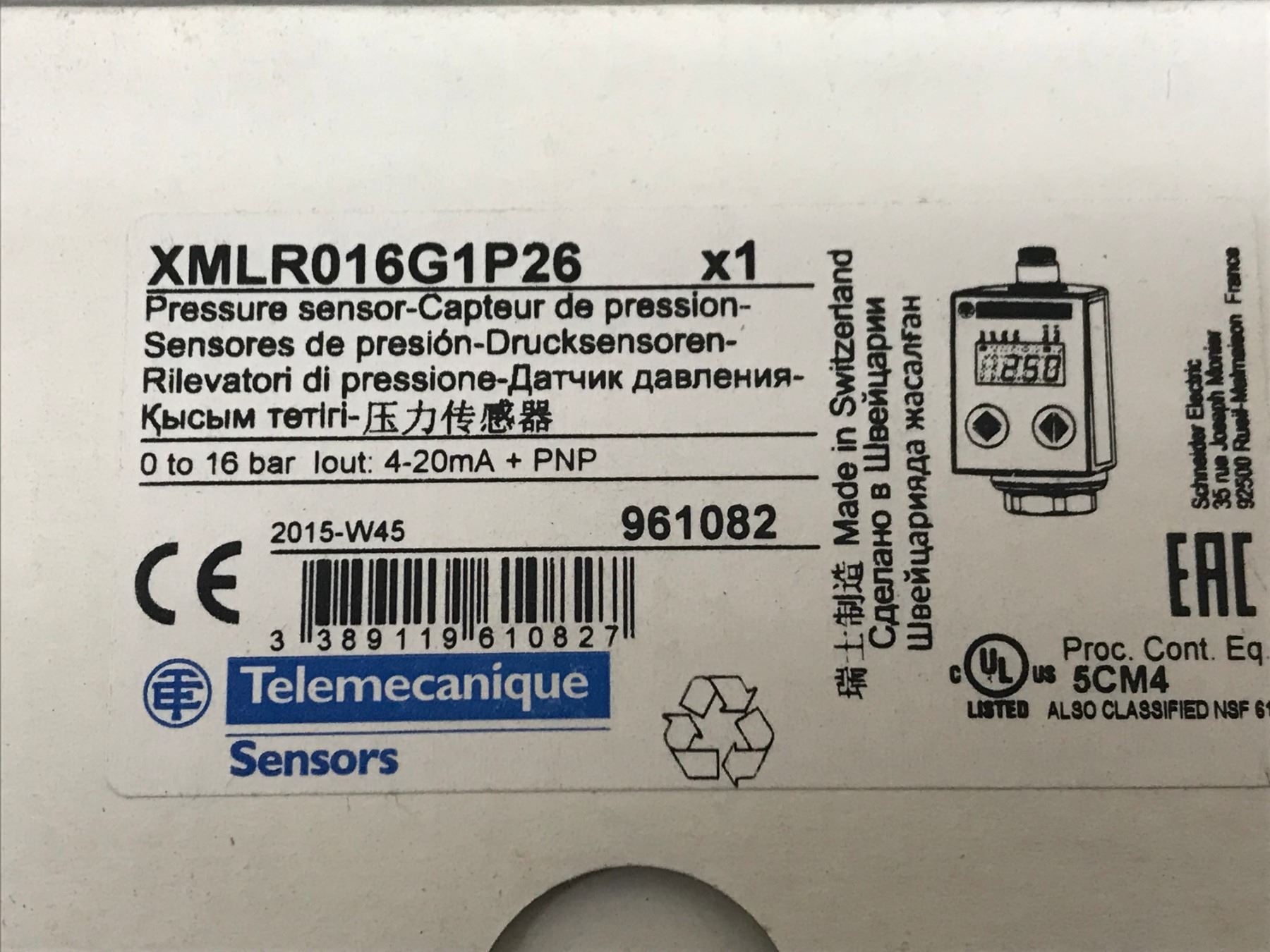 (3) Telemecanique XMLR016G1P26 PRESSURE SENSOR