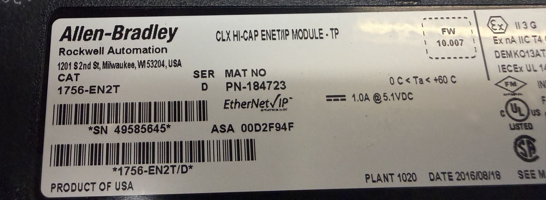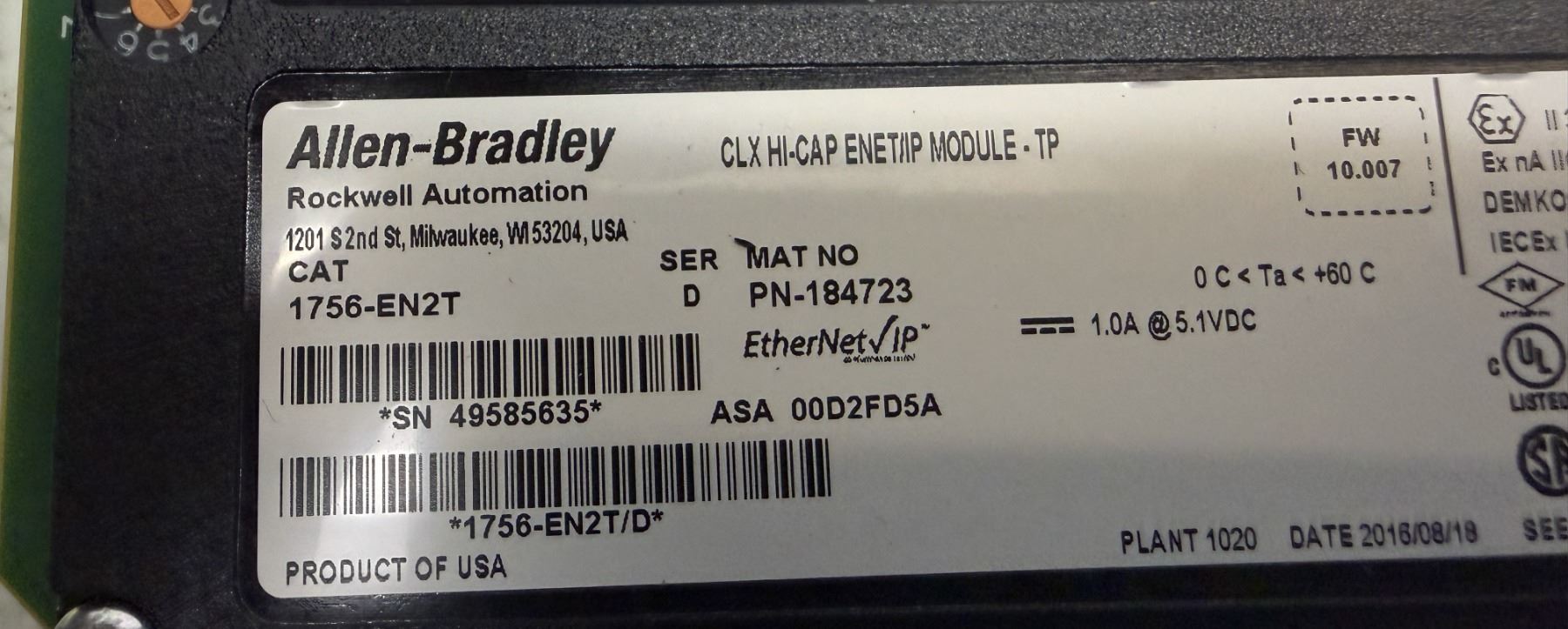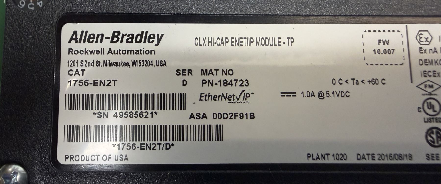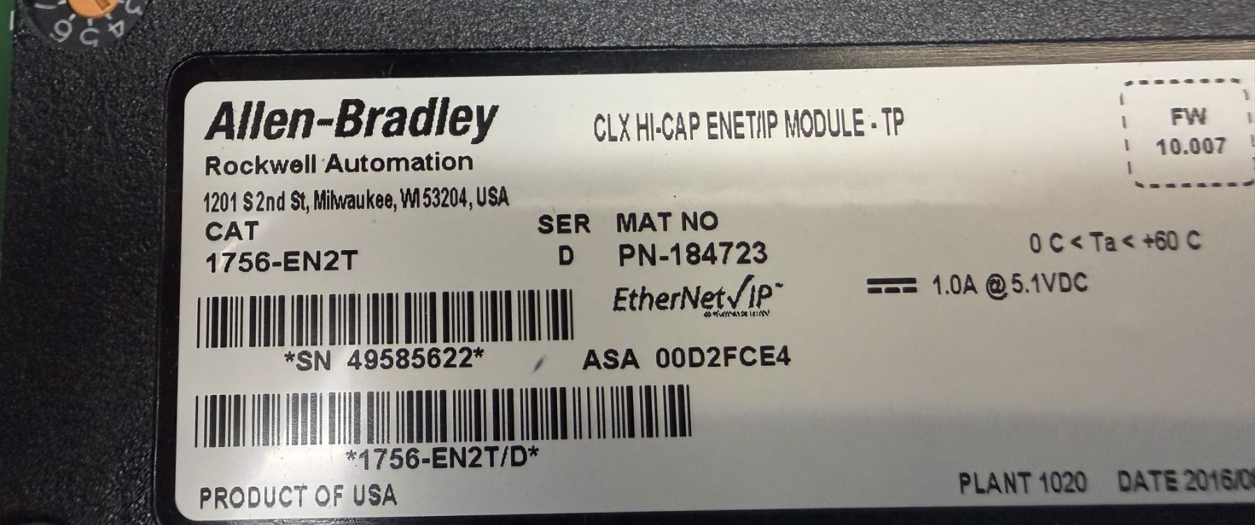 (4) Allen-Bradley #1756-EN2T / #PN-184723 CLX HI-CAP ENET/IP Module-TP