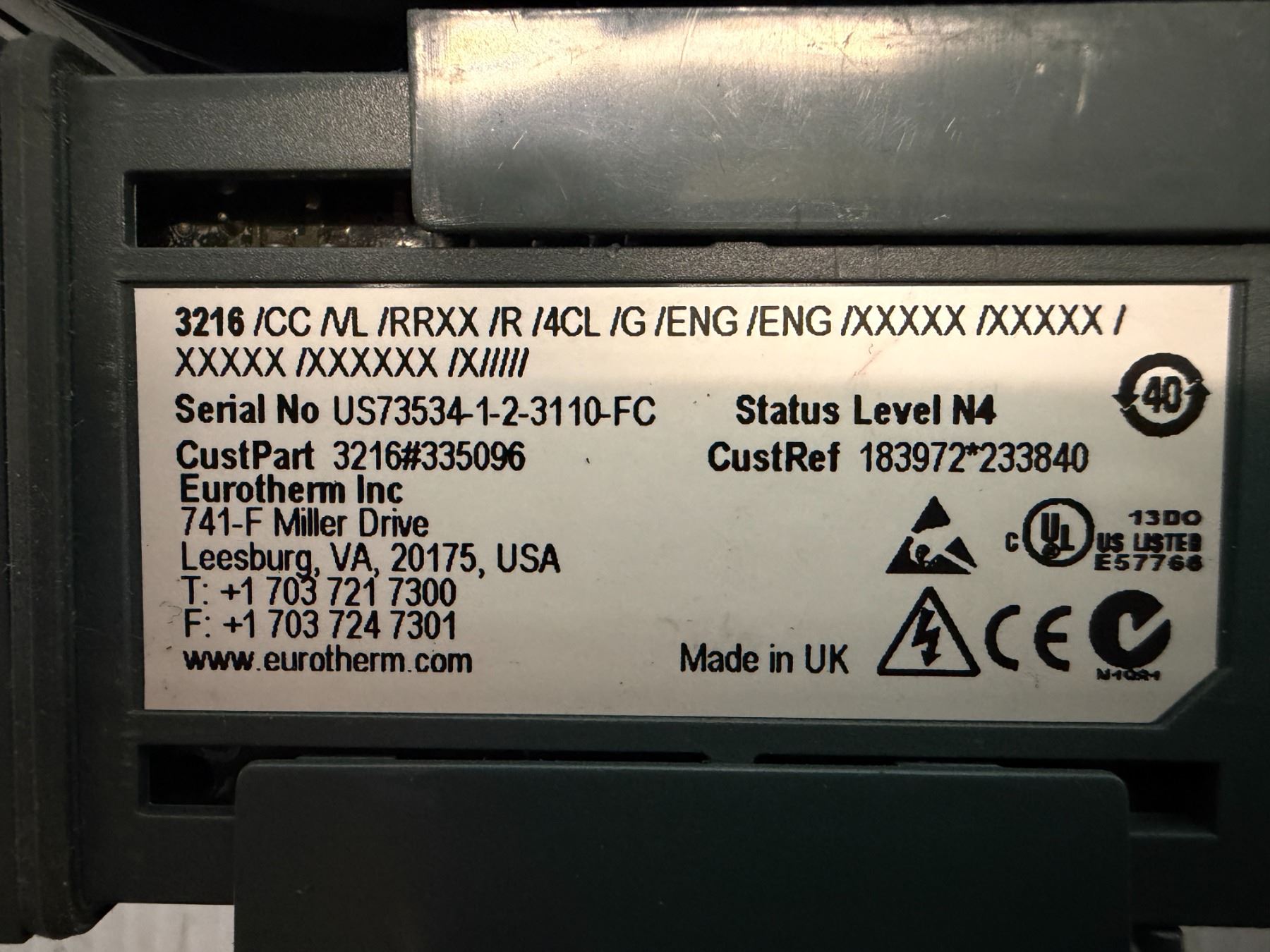 (4) Eurotherm #3216#335096 / #3216/CC/VL/RRXX/R/4CL/G/ENG/ENG