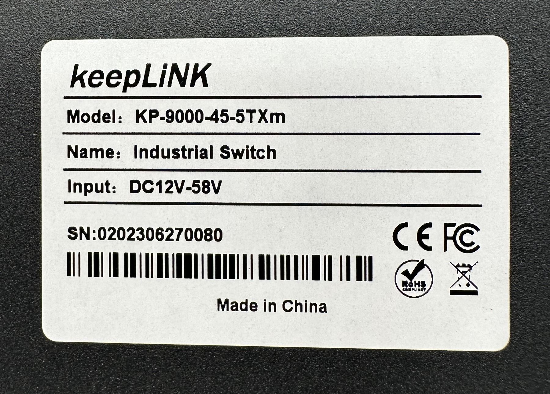 (4) Keep Link #KP-9000-45-5TXm Industrial Switches