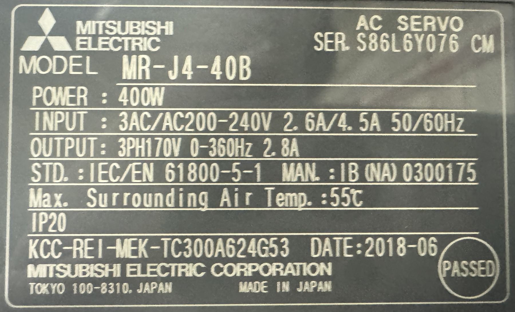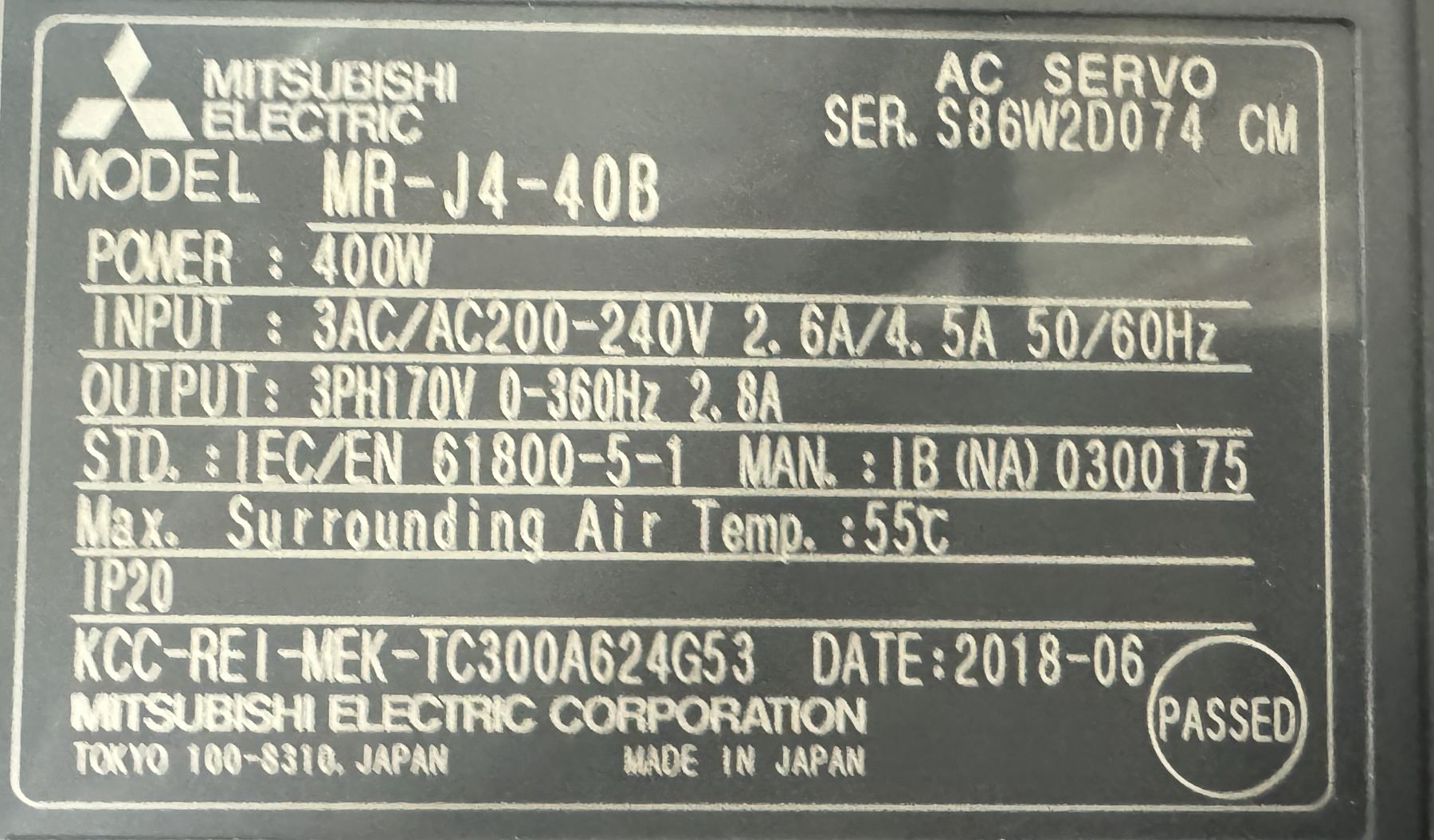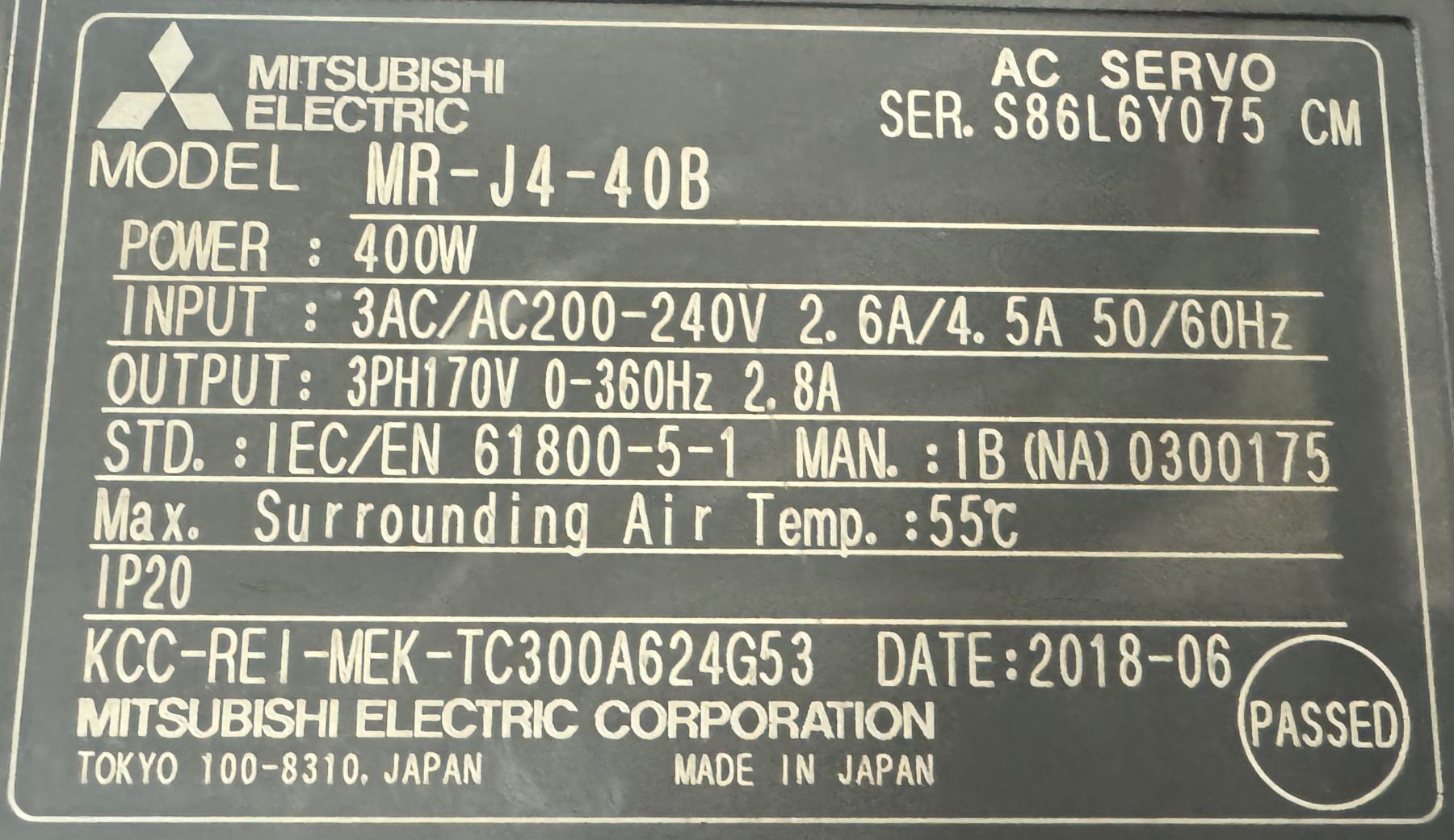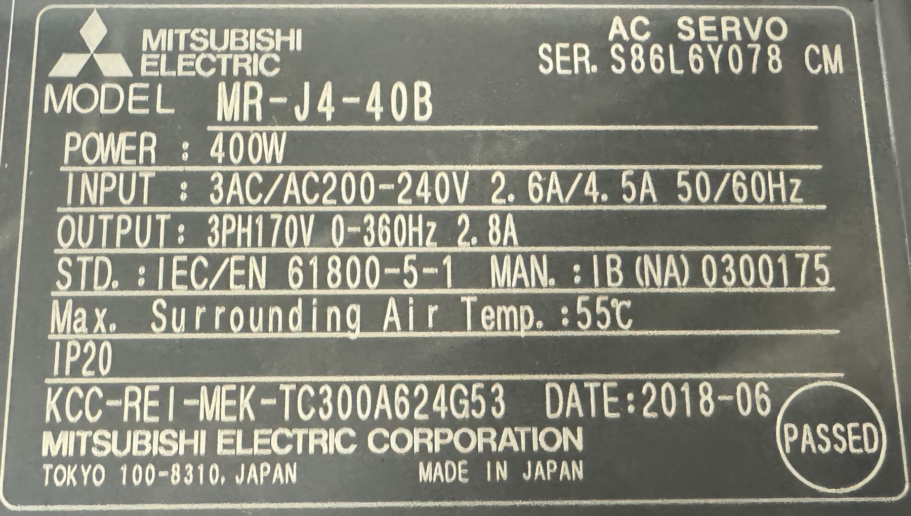 (4) Mitsubishi #MR-J4-40B AC Servo Drive