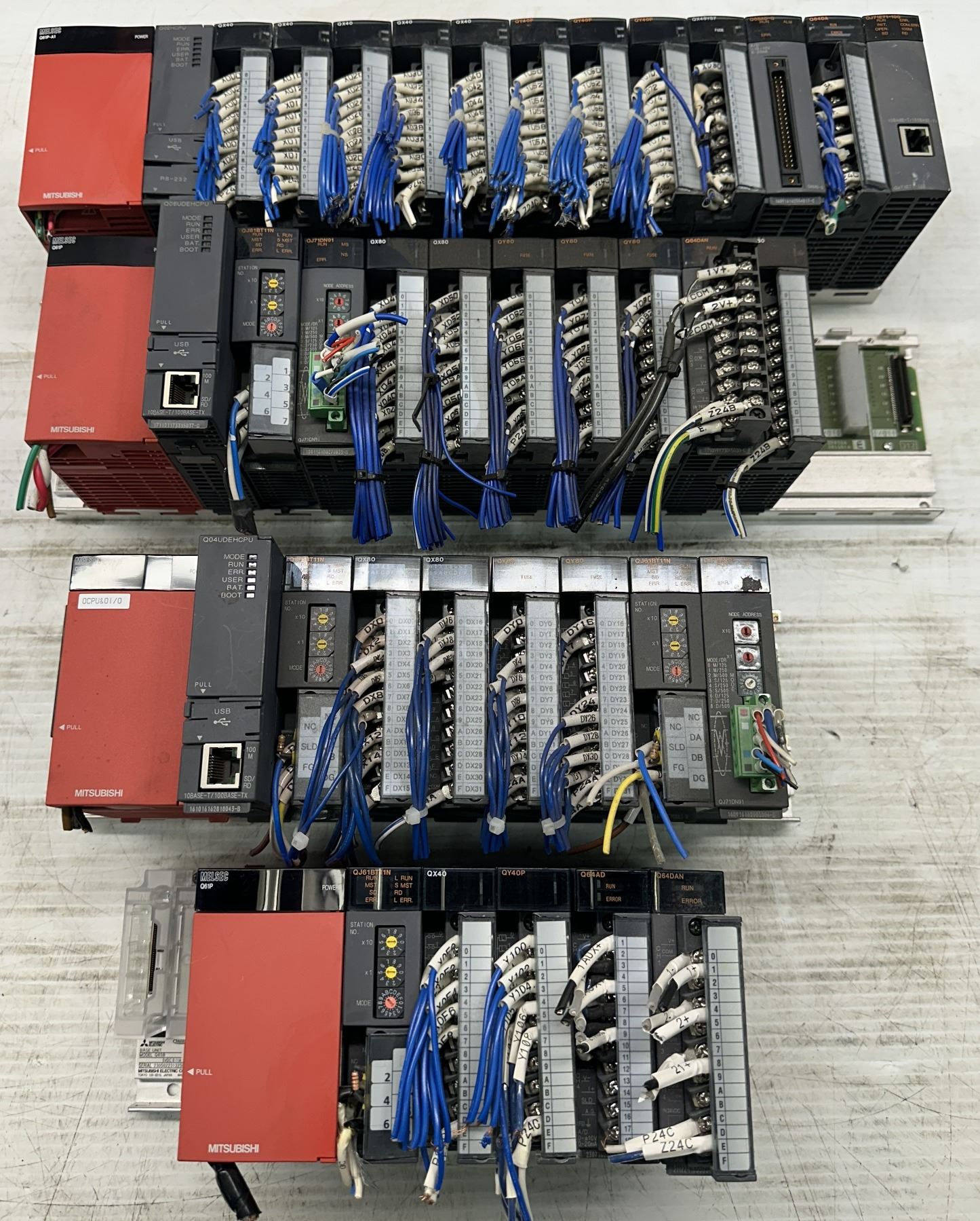 (4) Mitsubishi #Q38DB Base Units w/Power Supplies & Modules
