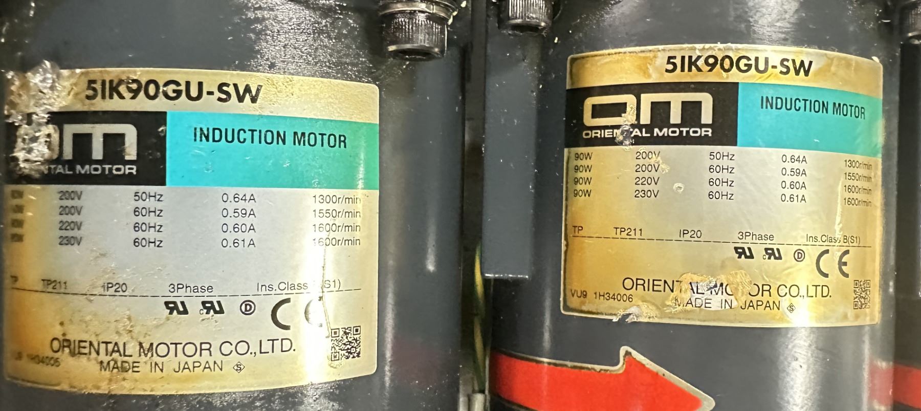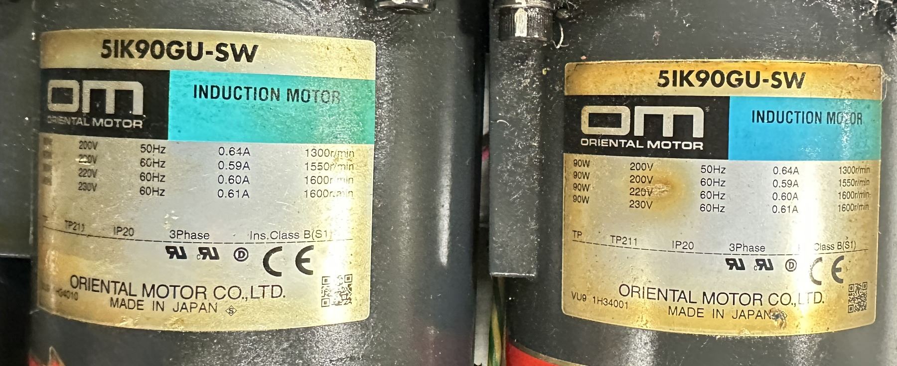 (4) Oriental Motor #5IK90GU-SW Induction Motors w/5GU25RH Gear Heads