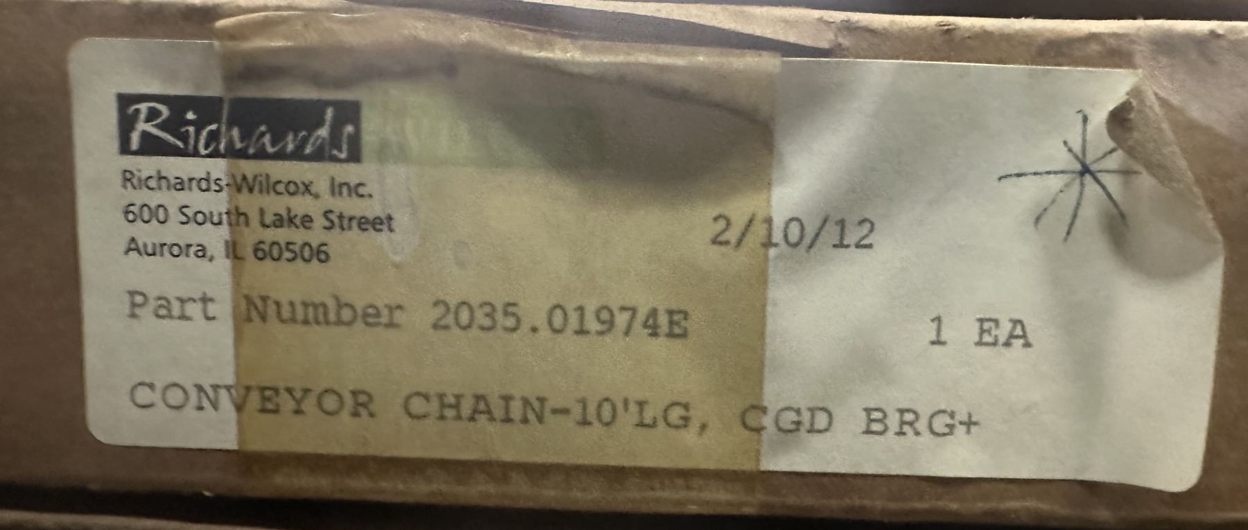(4) Richards Wilcox #2035.01974E Conveyor Chains