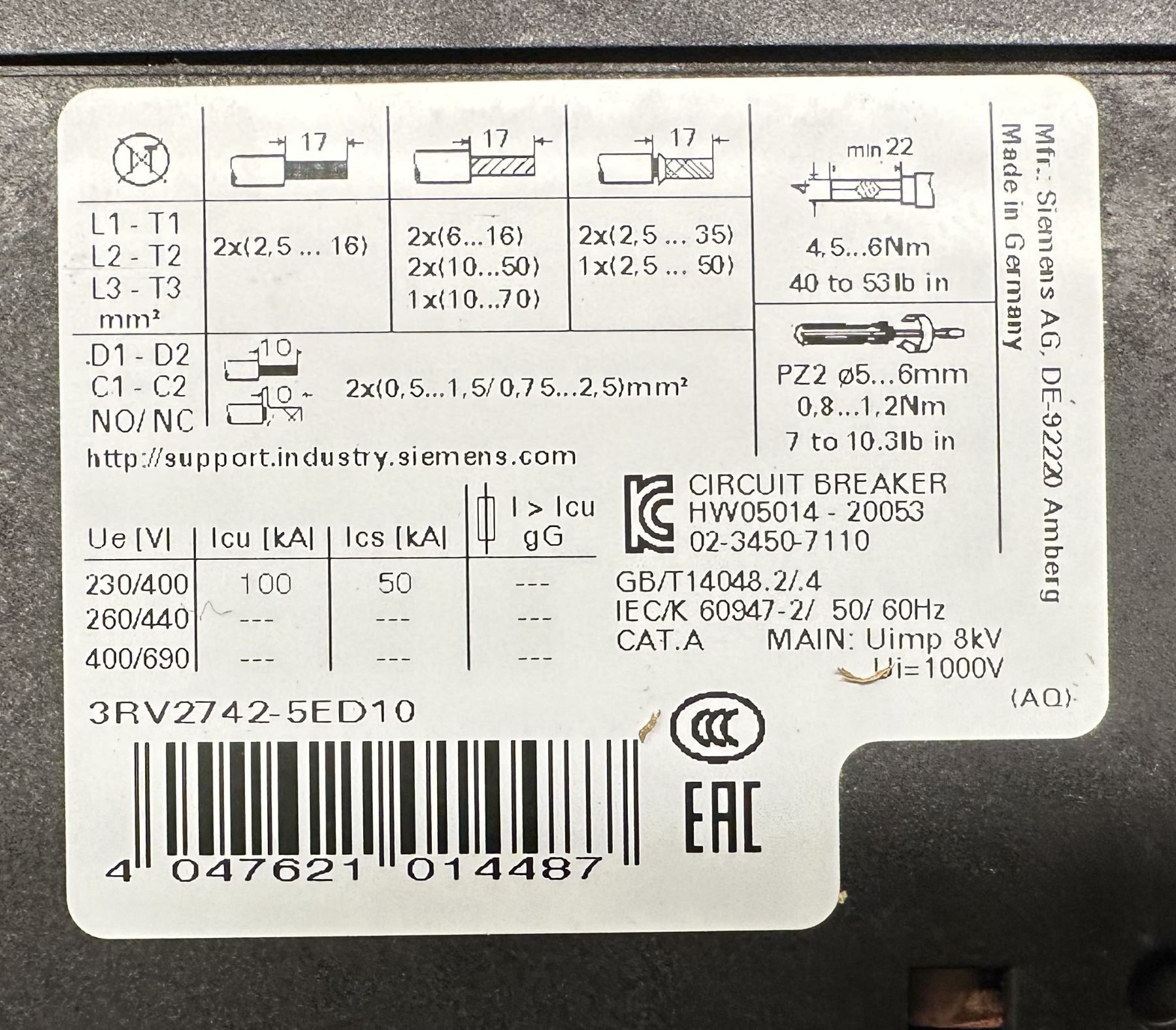 (4) Siemens #3RV2742-5ED10 Circuit Breakers