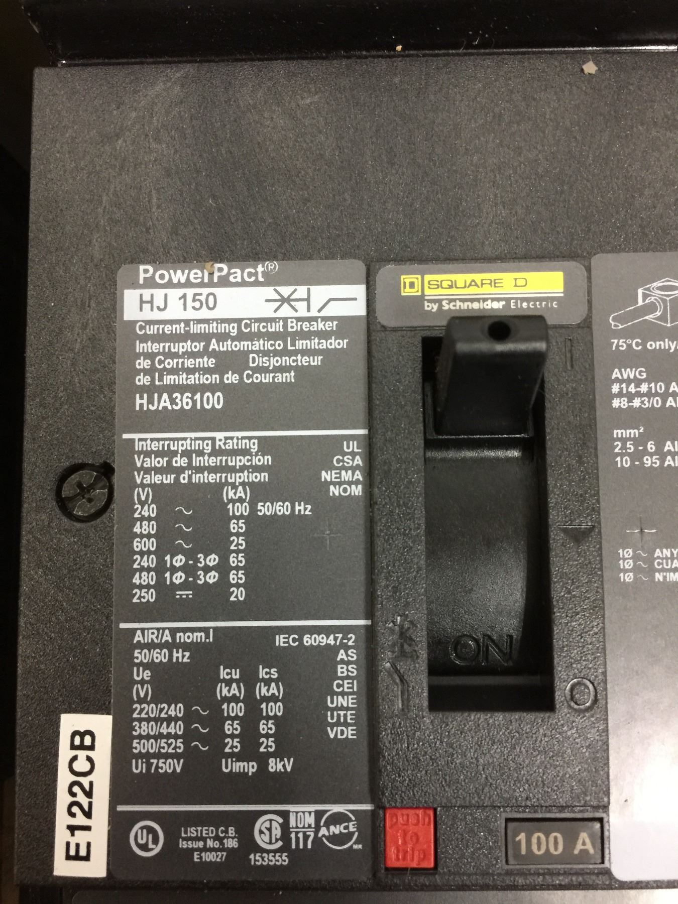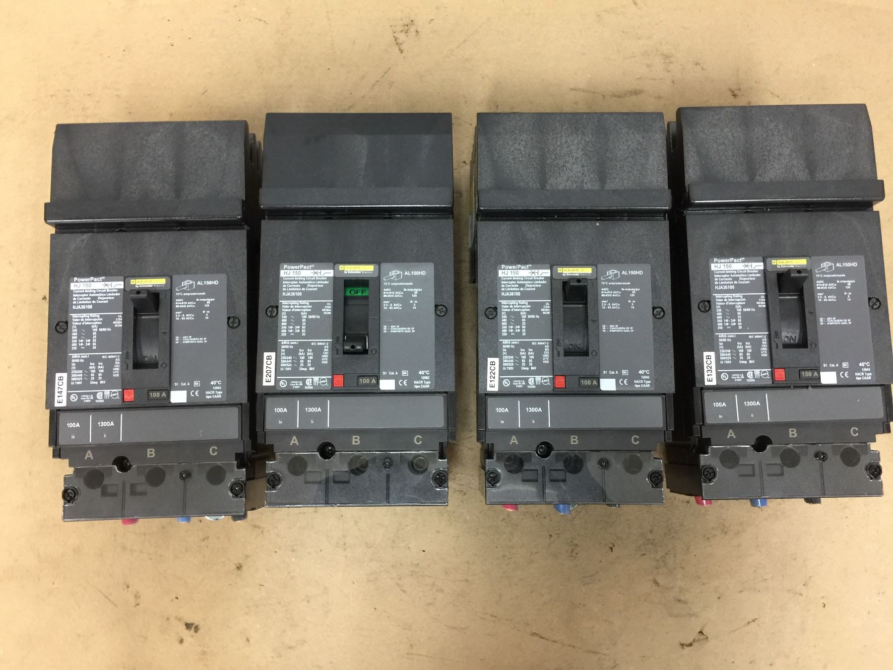 (4) Square D HJ 150 PowerPact Circuit Breakers