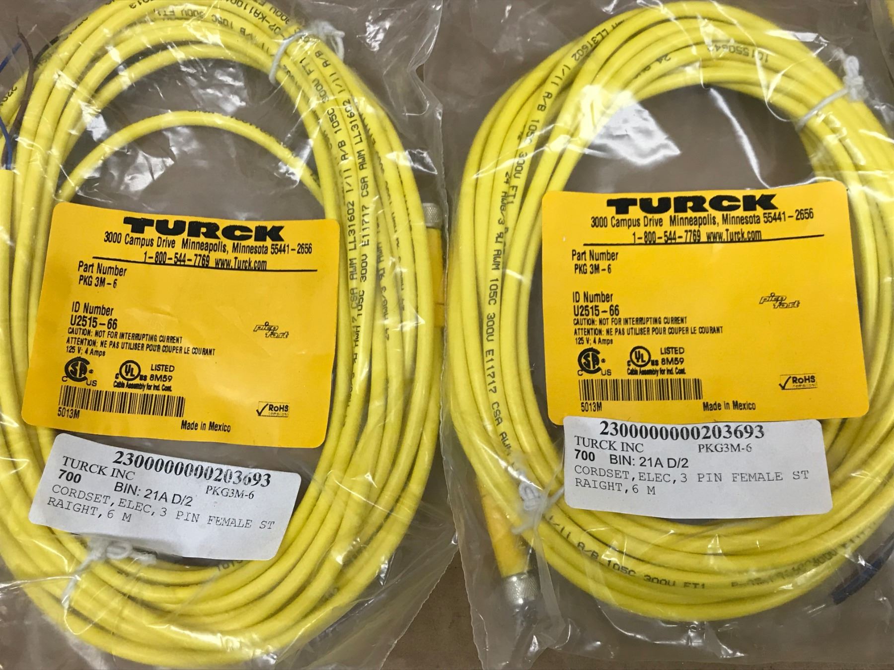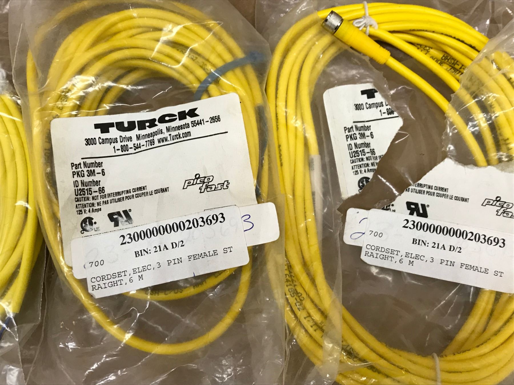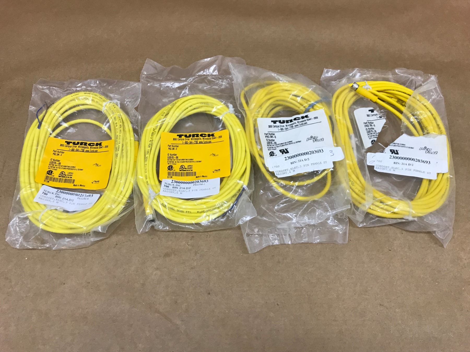 (4) TURCK PKG 3M-6 CORDSET