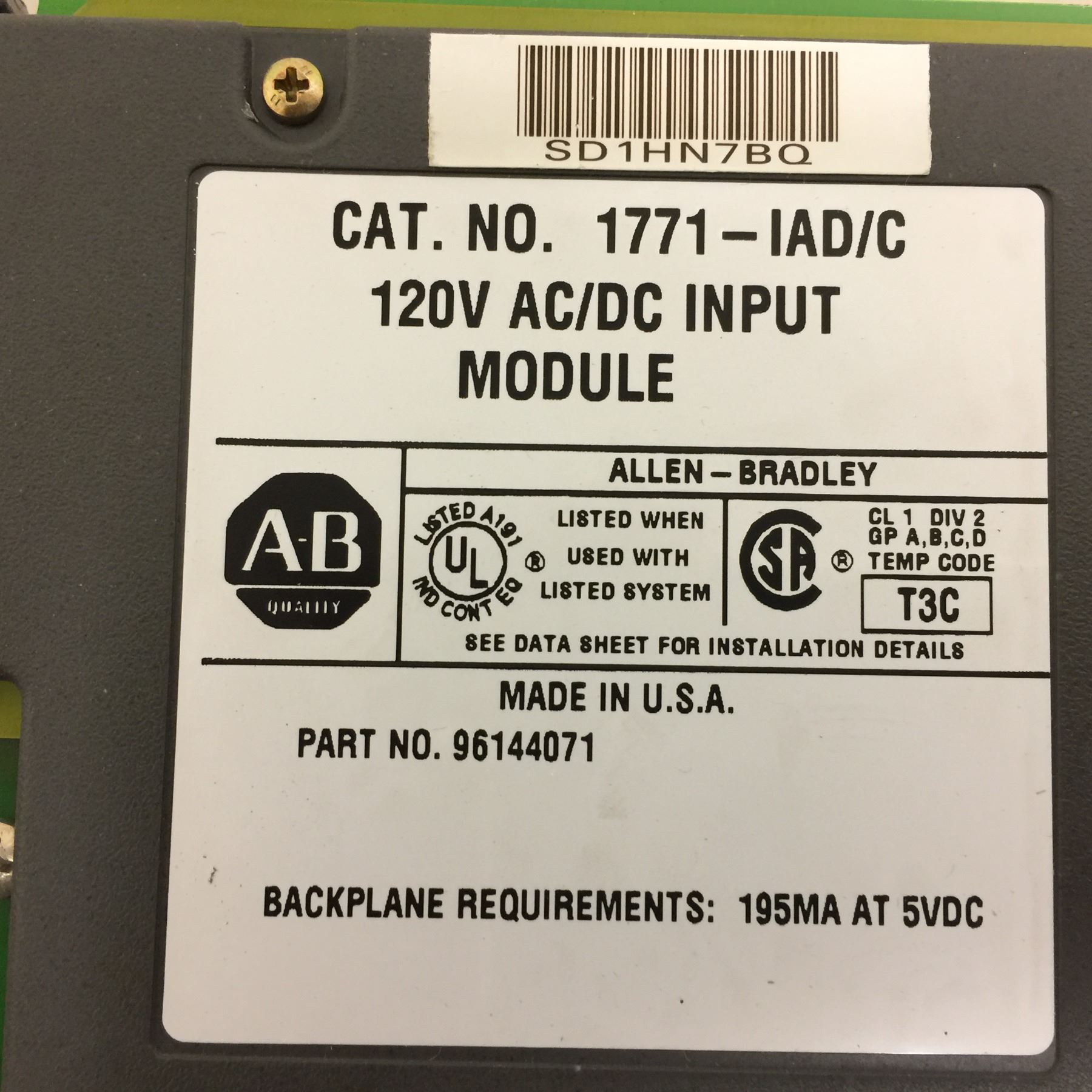 (5) Allen-Bradley 1771-IAD/C AC/DC Input Module