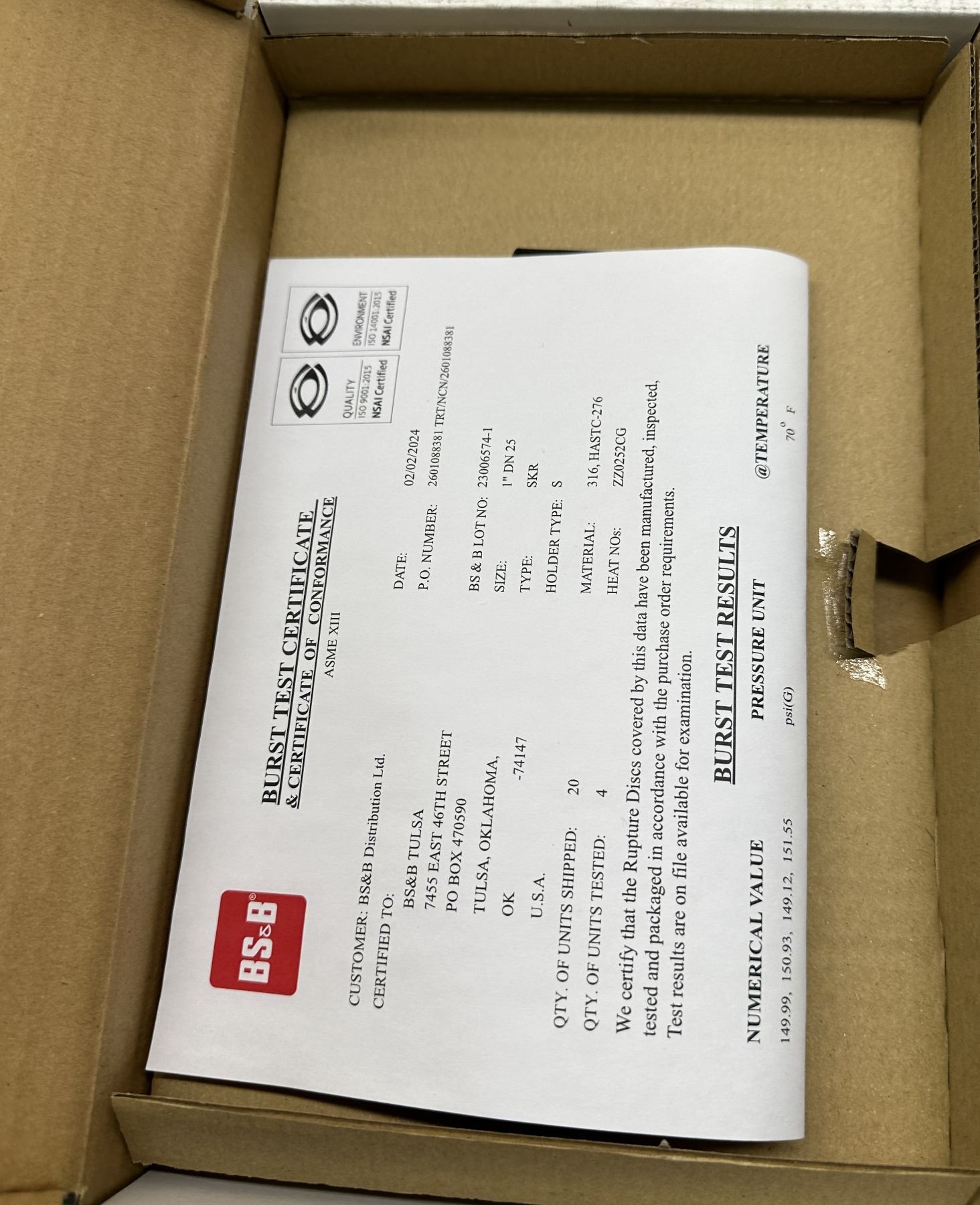 (5) BS&B Safety #23006574-1 Rupture Disc Burst Pressure 150.00PSI(G) @ 70 Degrees