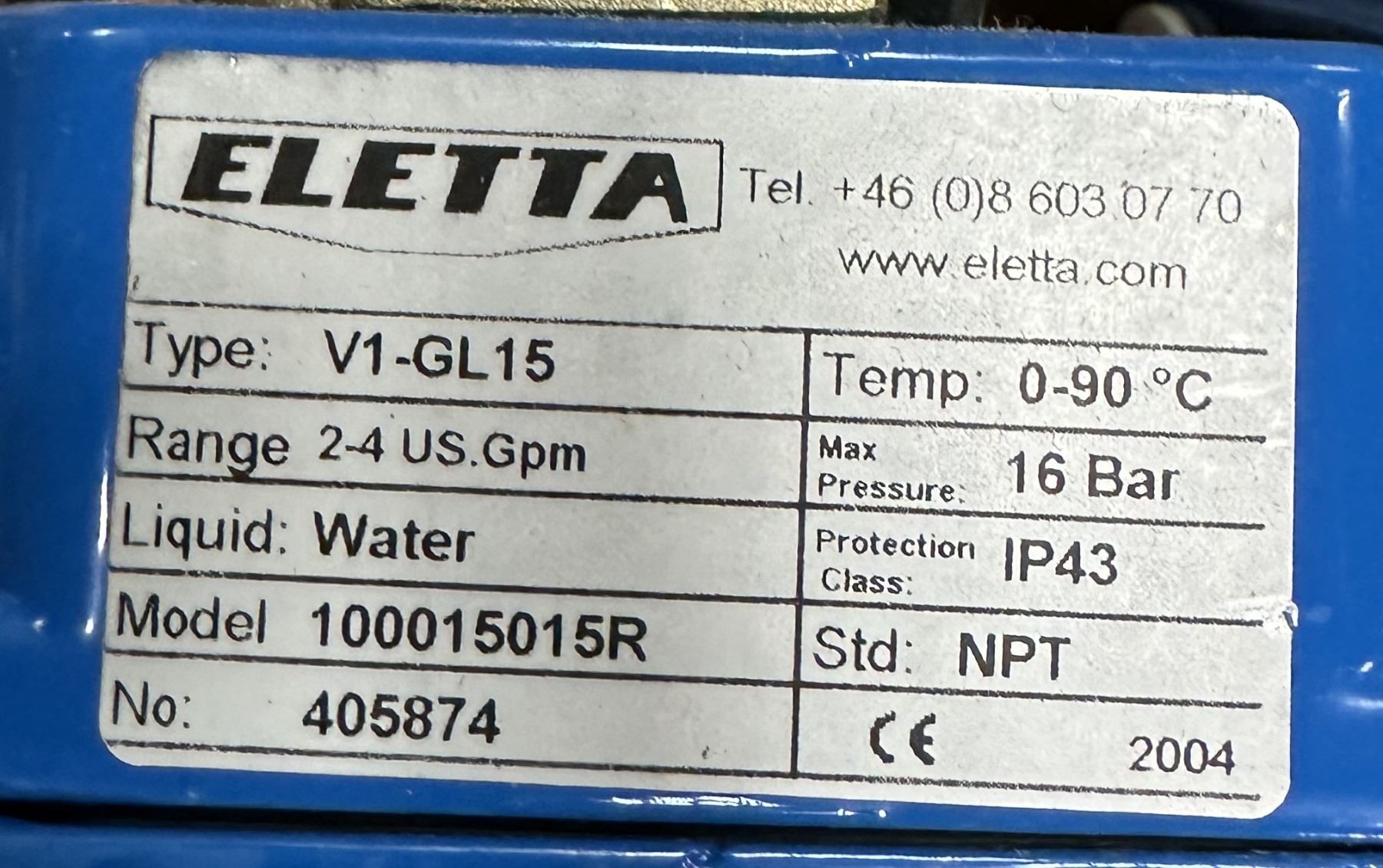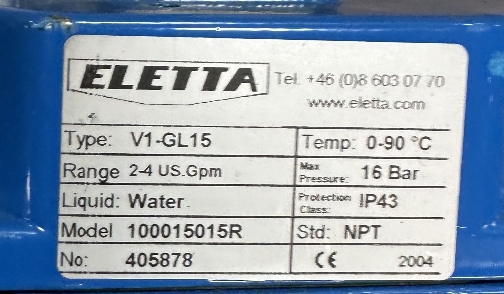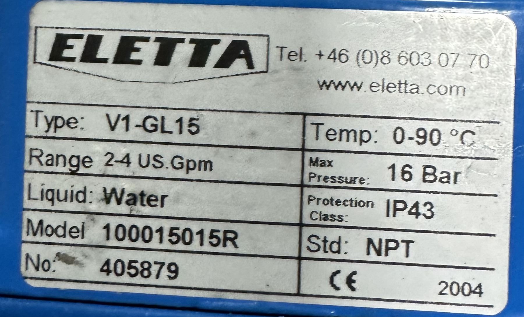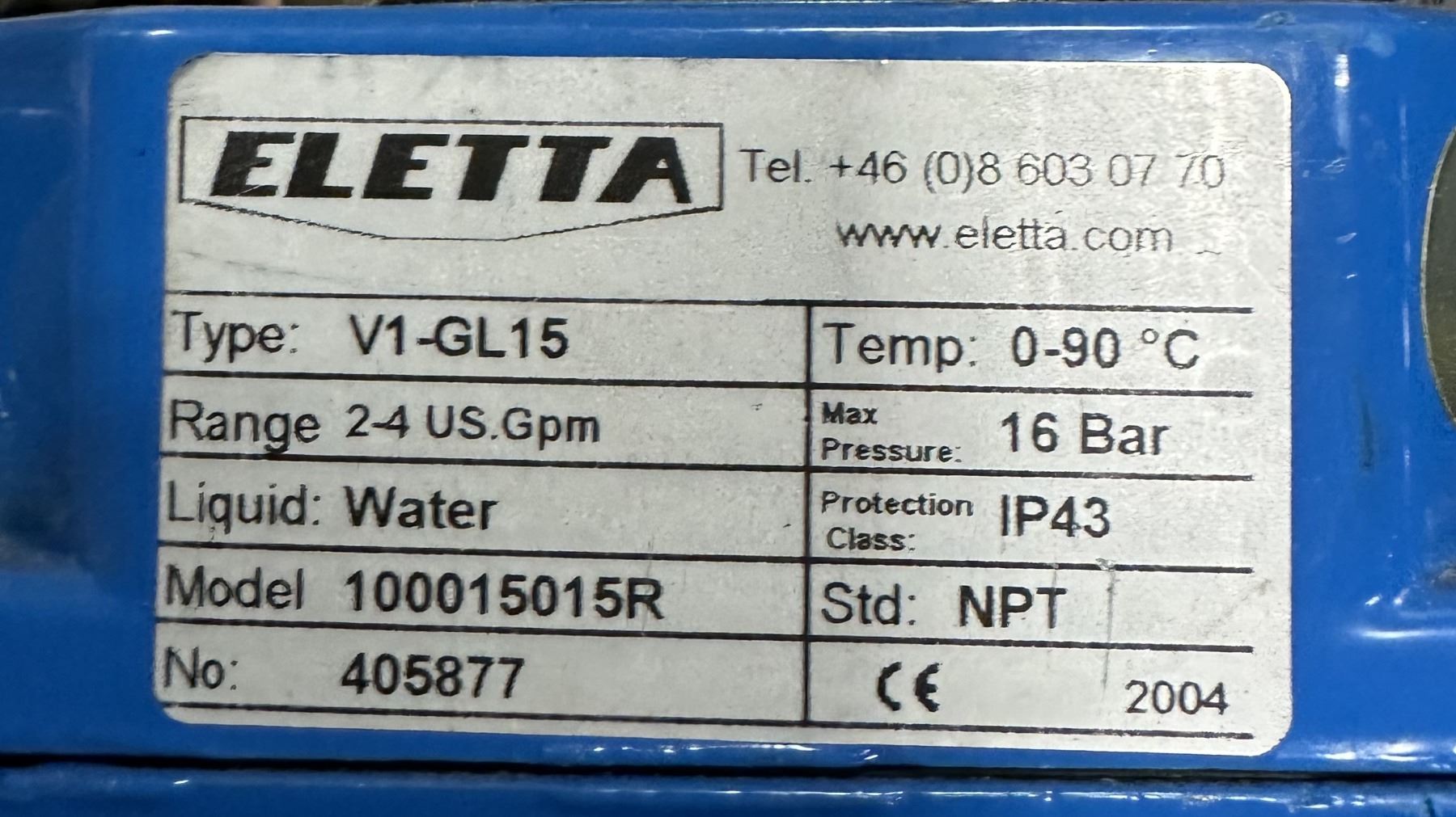 (5) Eletta #V1-GL15 / 100015015R Water Flow Monitors