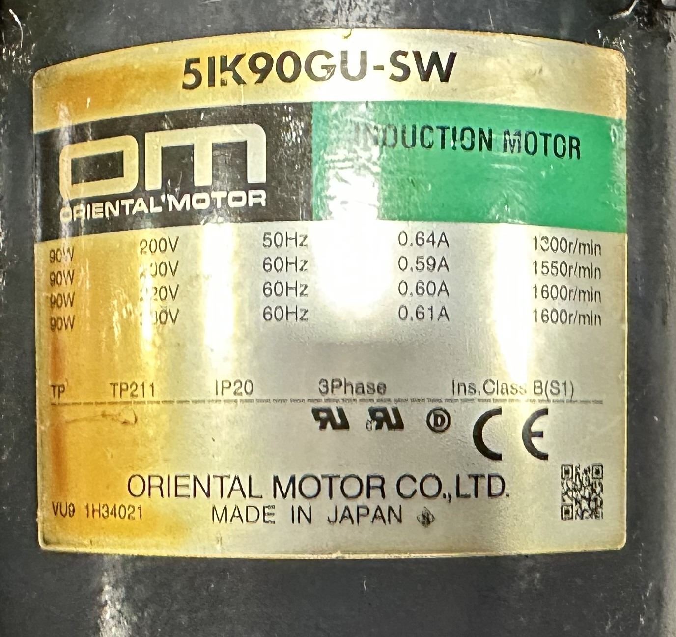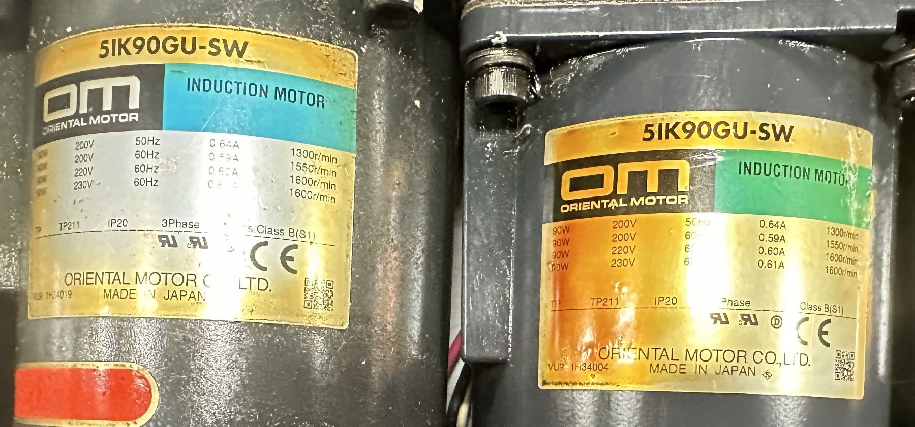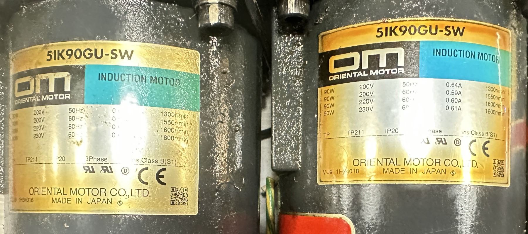 (5) Oriental Motor #5IK90GU-SW Induction Motors w/5GU25RH Gear Heads