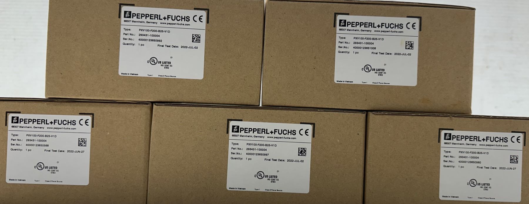 (5) Pepperl+Fuchs #293431-100004 / PXV100-F200-B25-V1D Optical Reading Heads