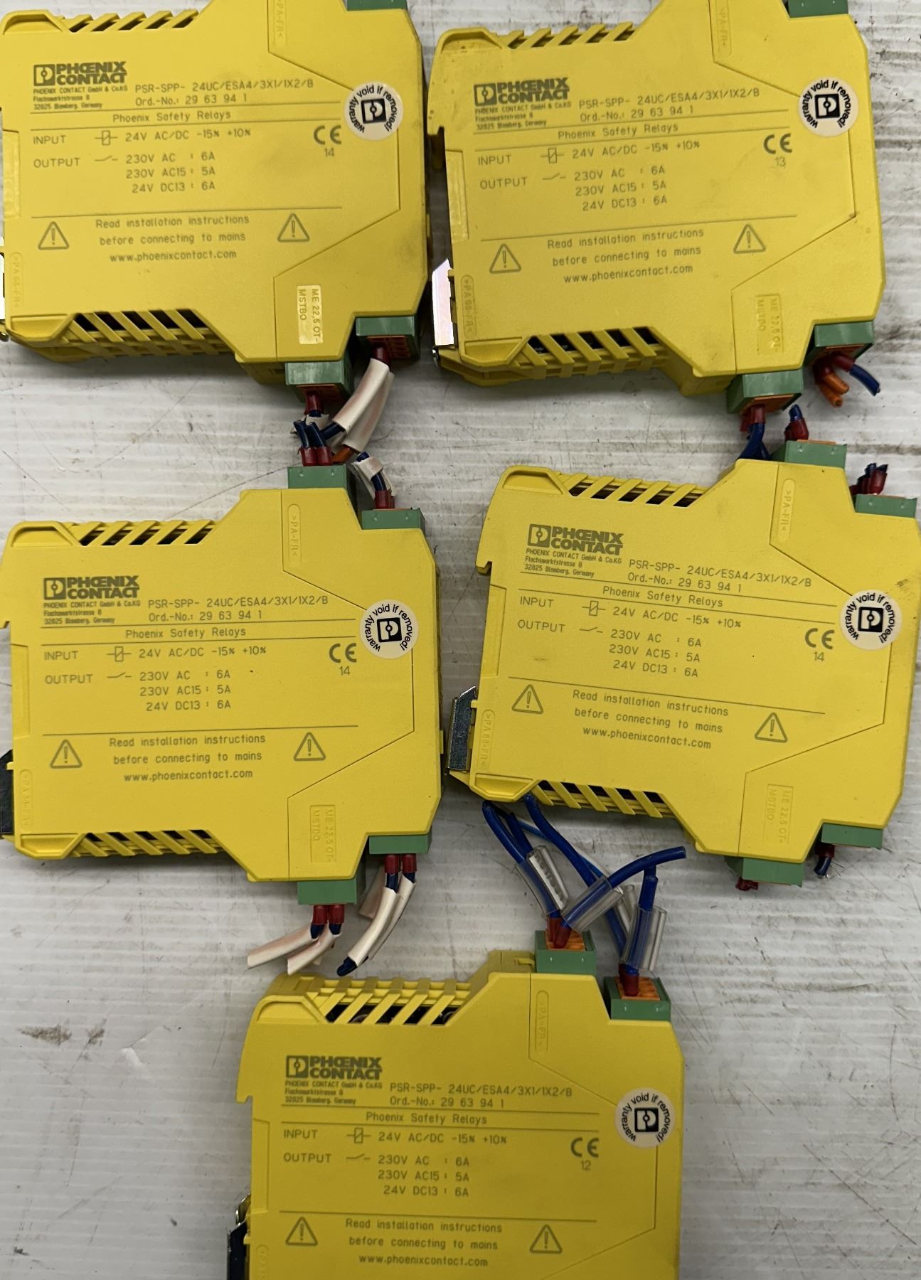 (5) Phoenix Contact #29 63 94 1 / PSR-SPP-24UC/ESA4/3X1/1X2/B Safety Relays