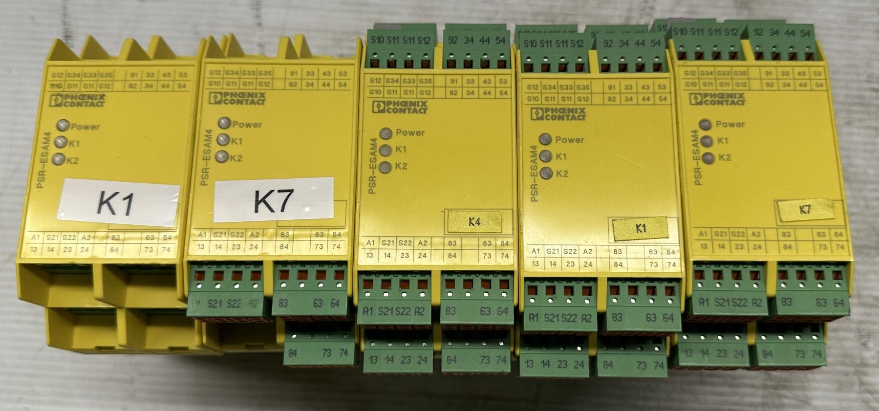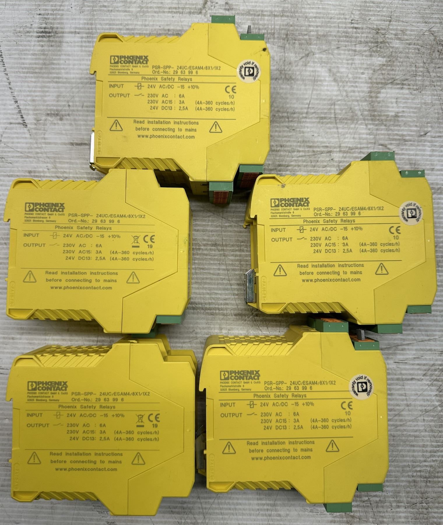 (5) Phoenix Contact #29 63 99 6/PSR-SPP-24UC/ESAM4/8X1/1X2 Safety Relays