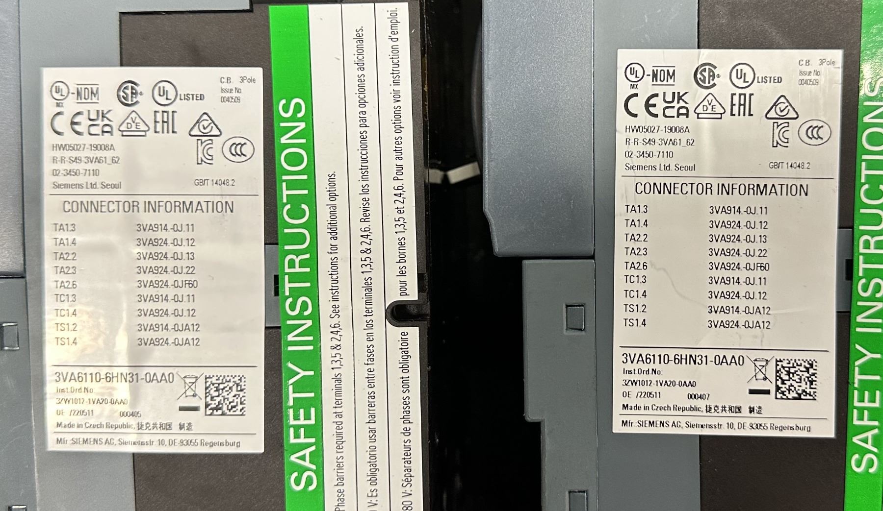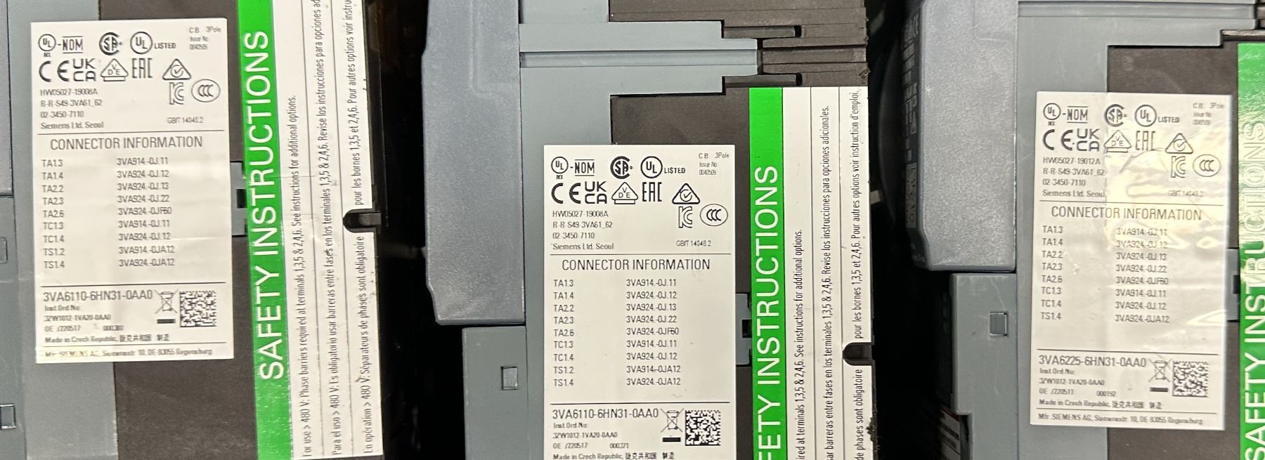 (5) Siemens #3VA6110-6HN31-0AA0 Circuit Breakers