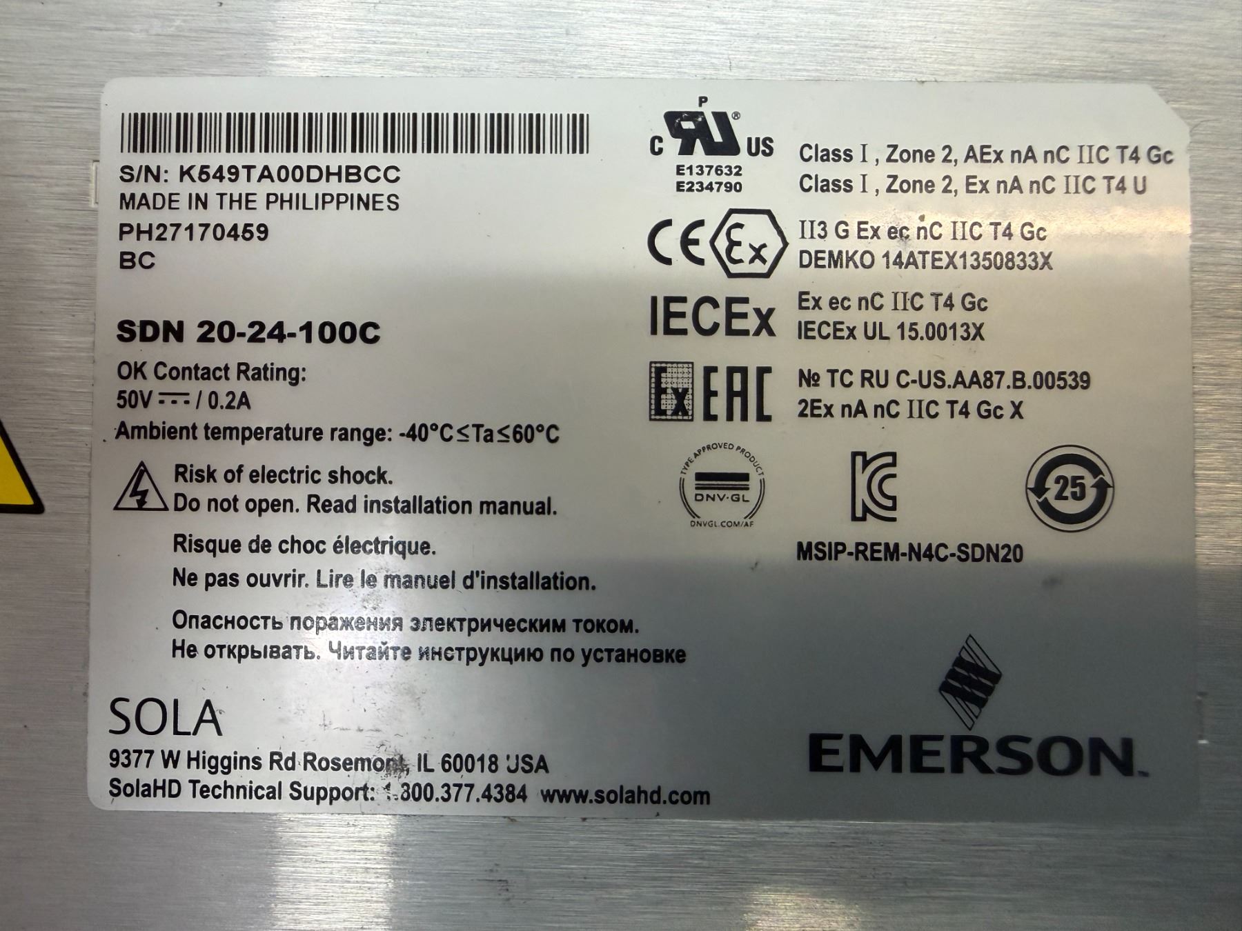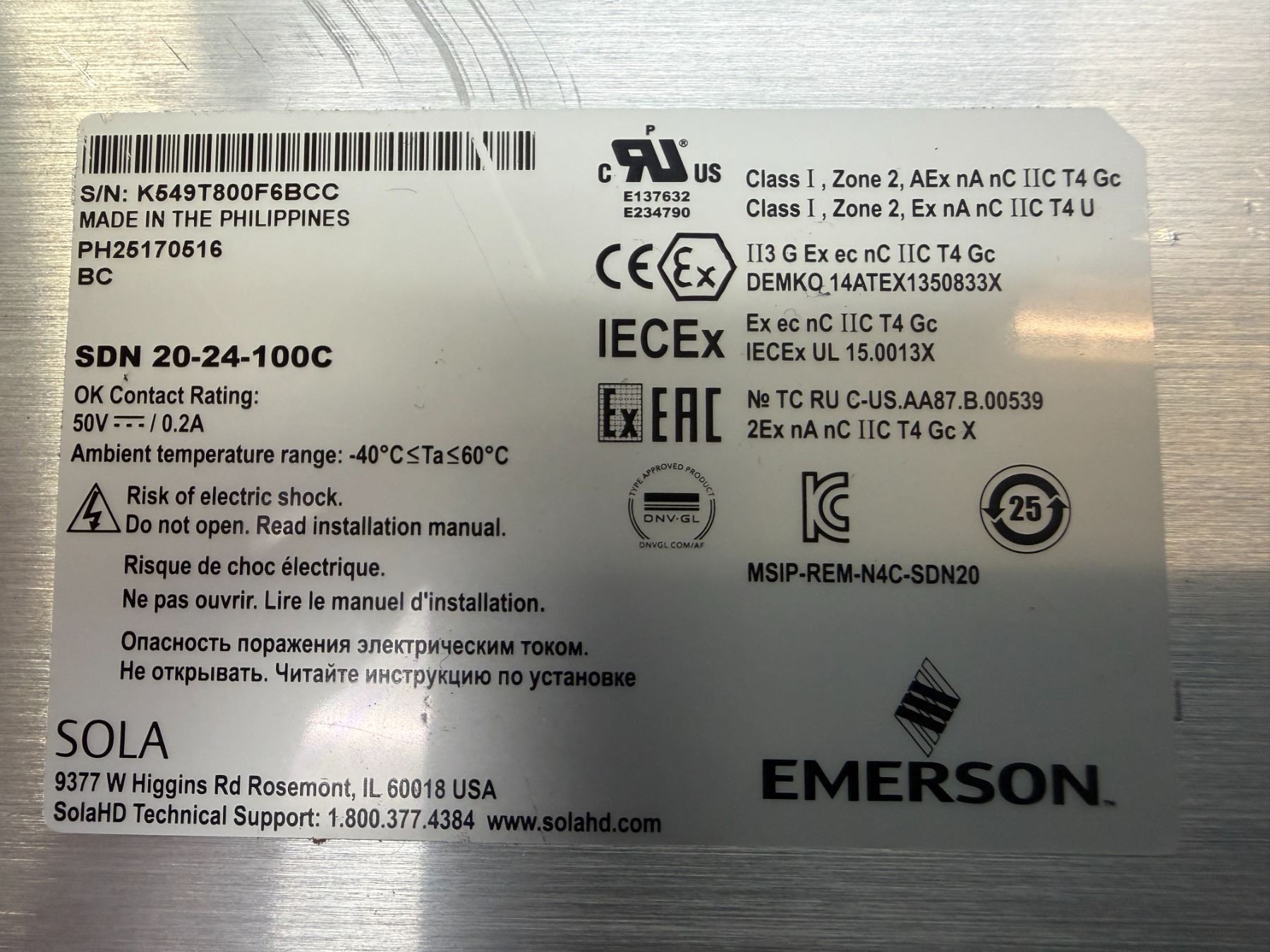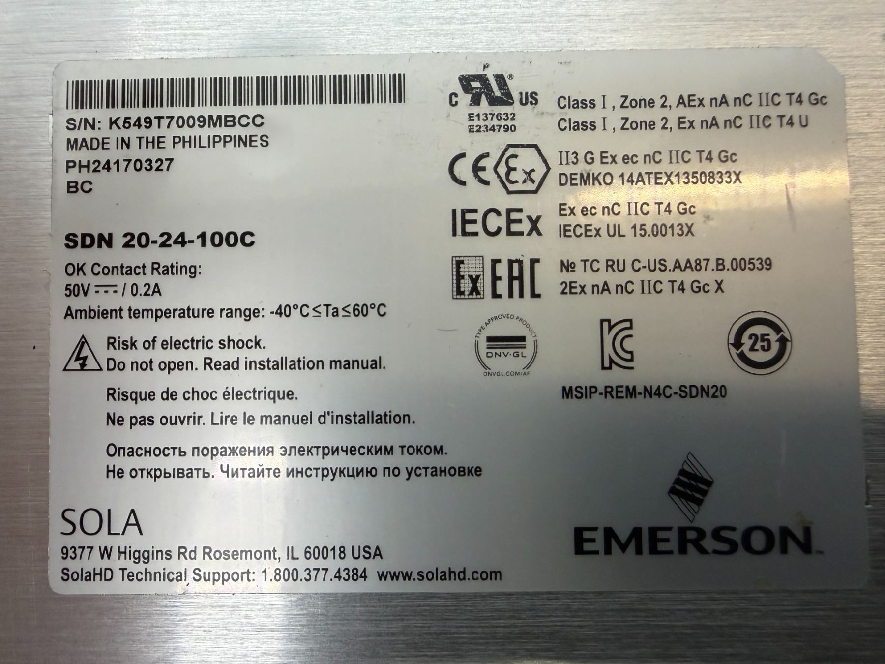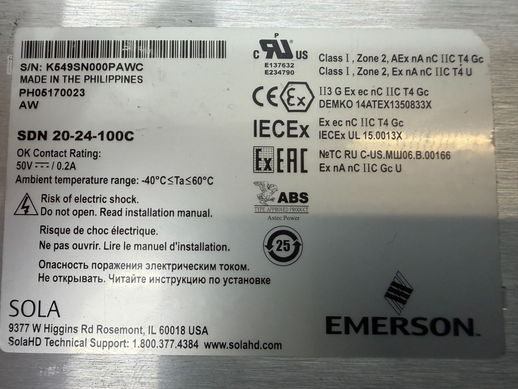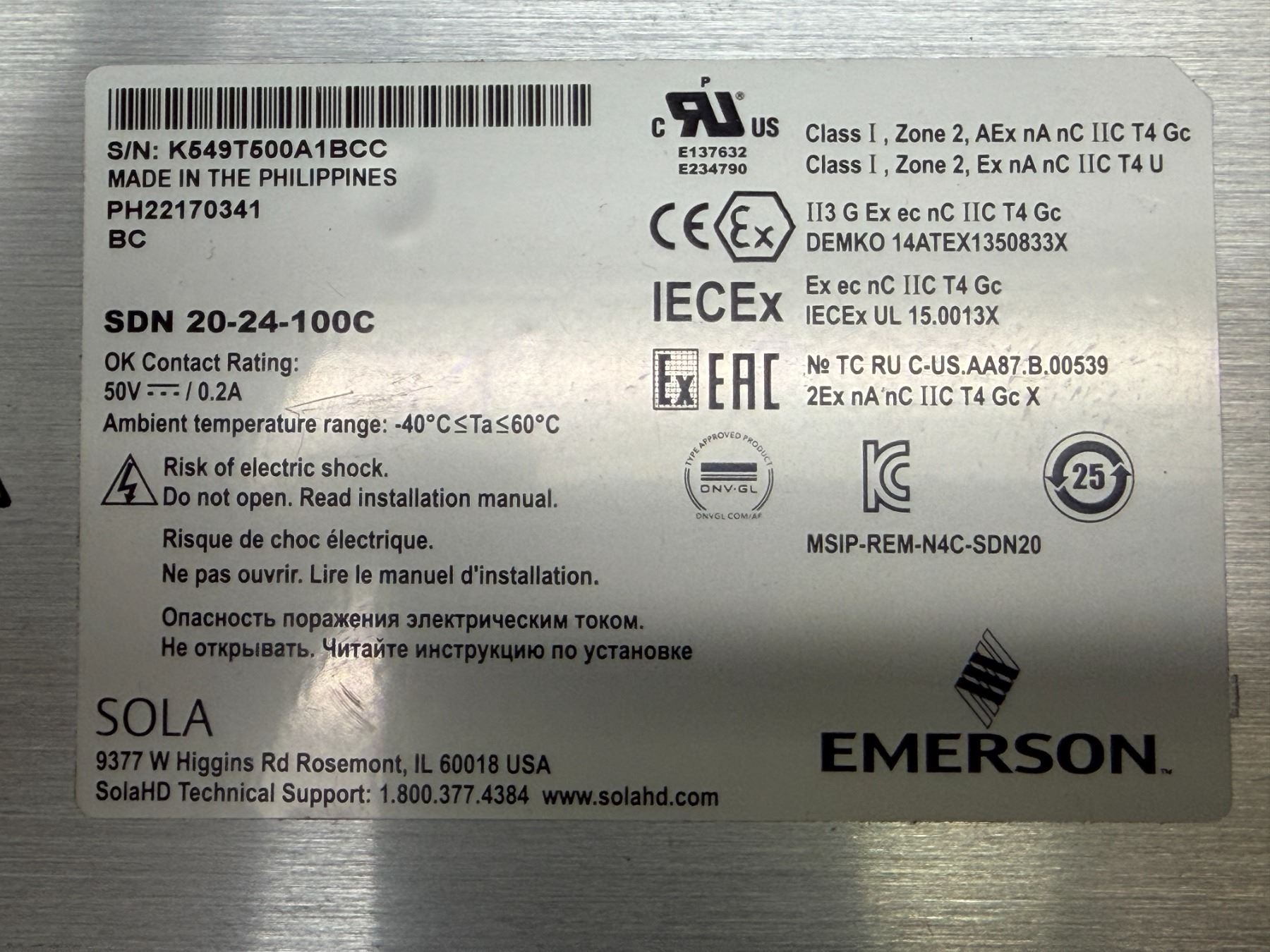 (5) Sola #SDN 20-24-100C Power Supplies