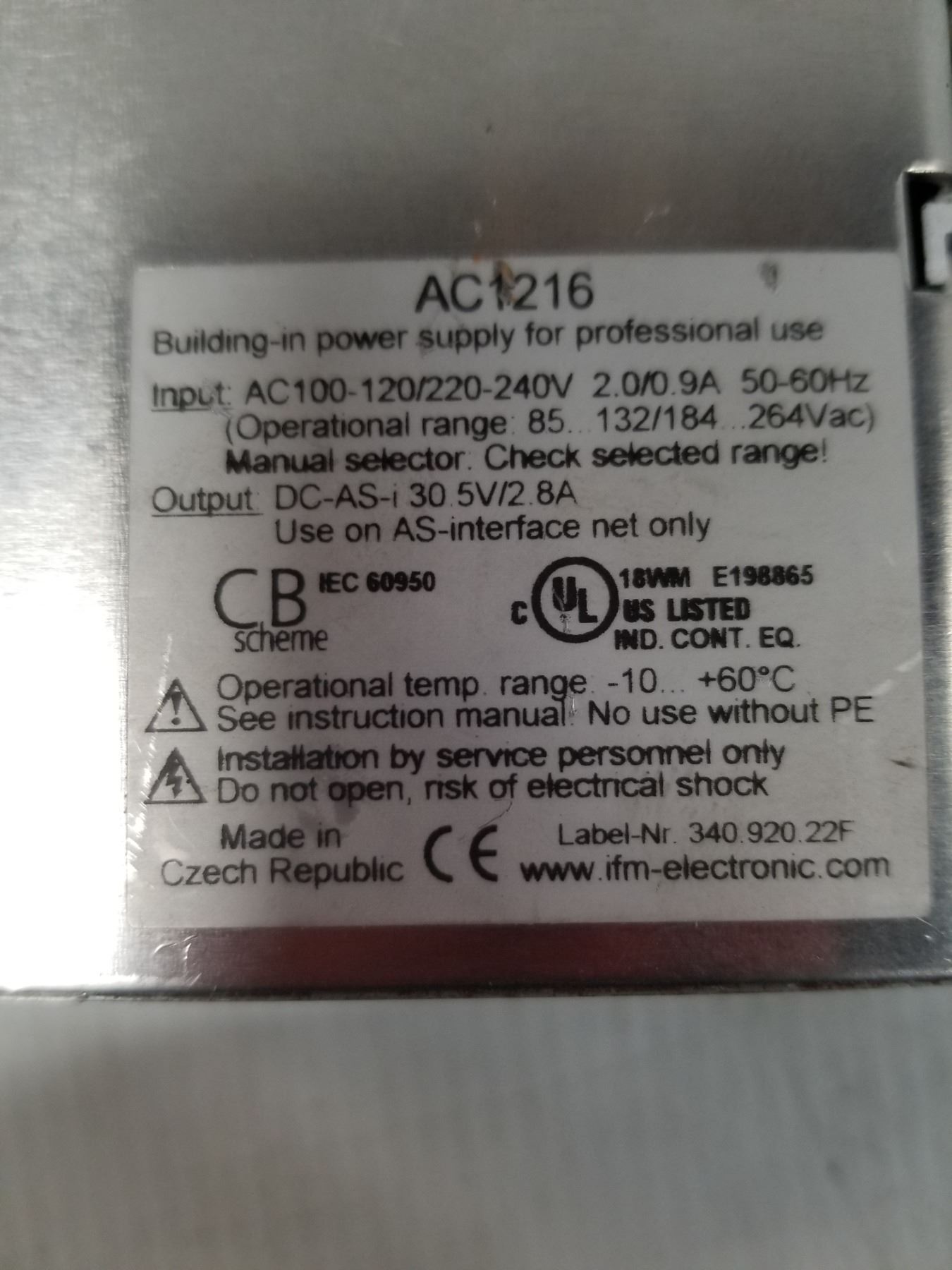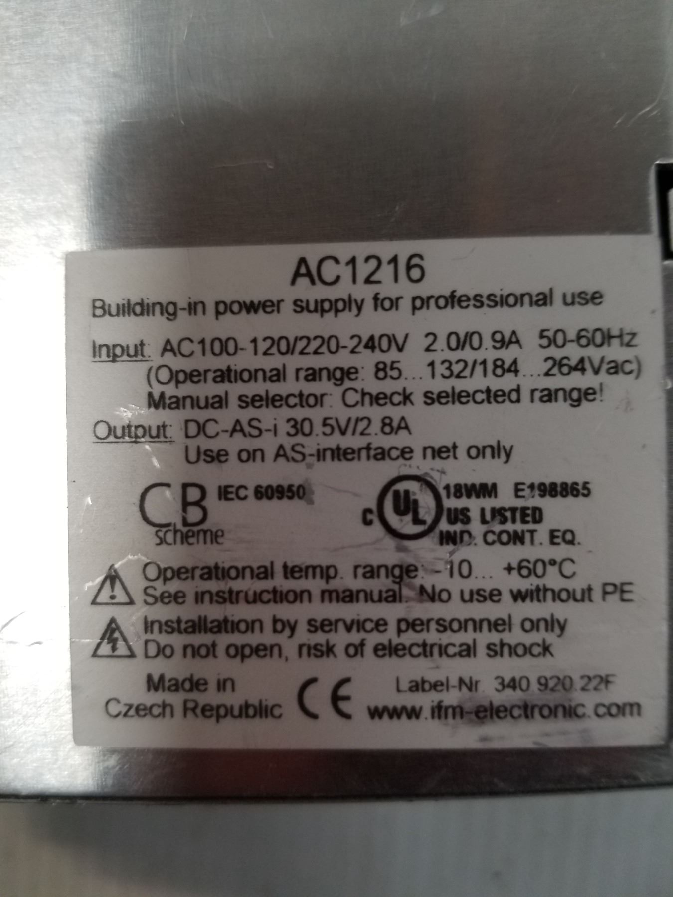 (6) IFM AC1216 POWER SUPPLY