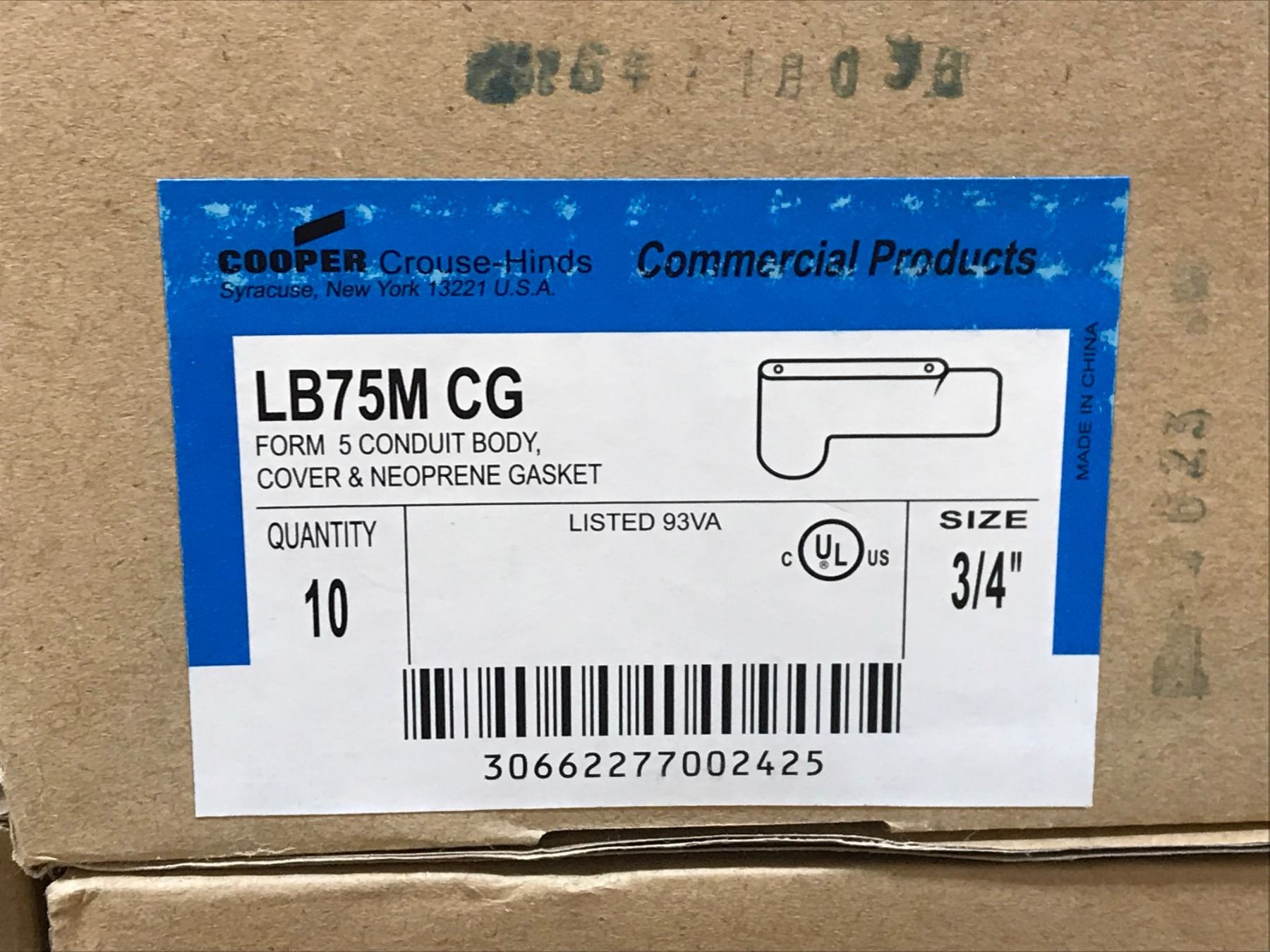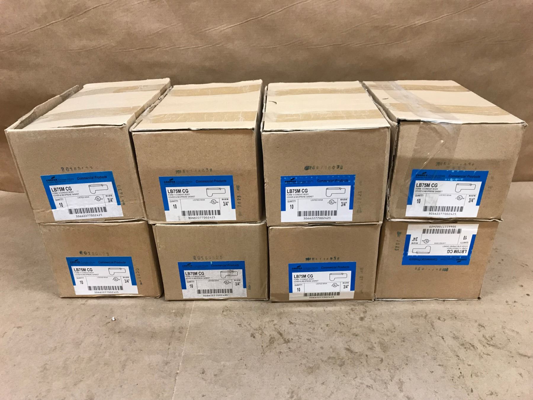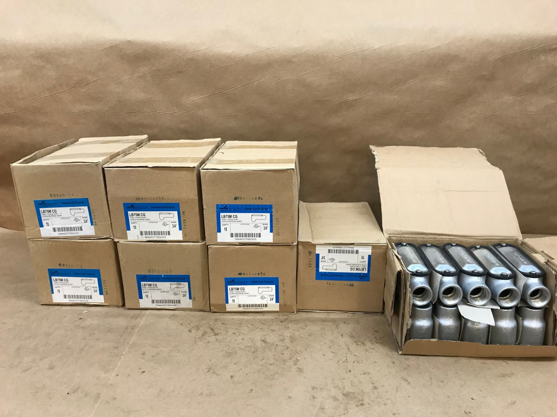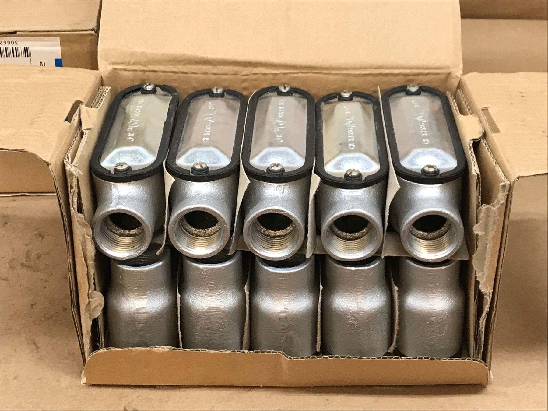 (8) COOPER CROUSE-HINDS LB75M CG CONDUIT BODY , COVER & NEOPRENE GASKET QTY 10