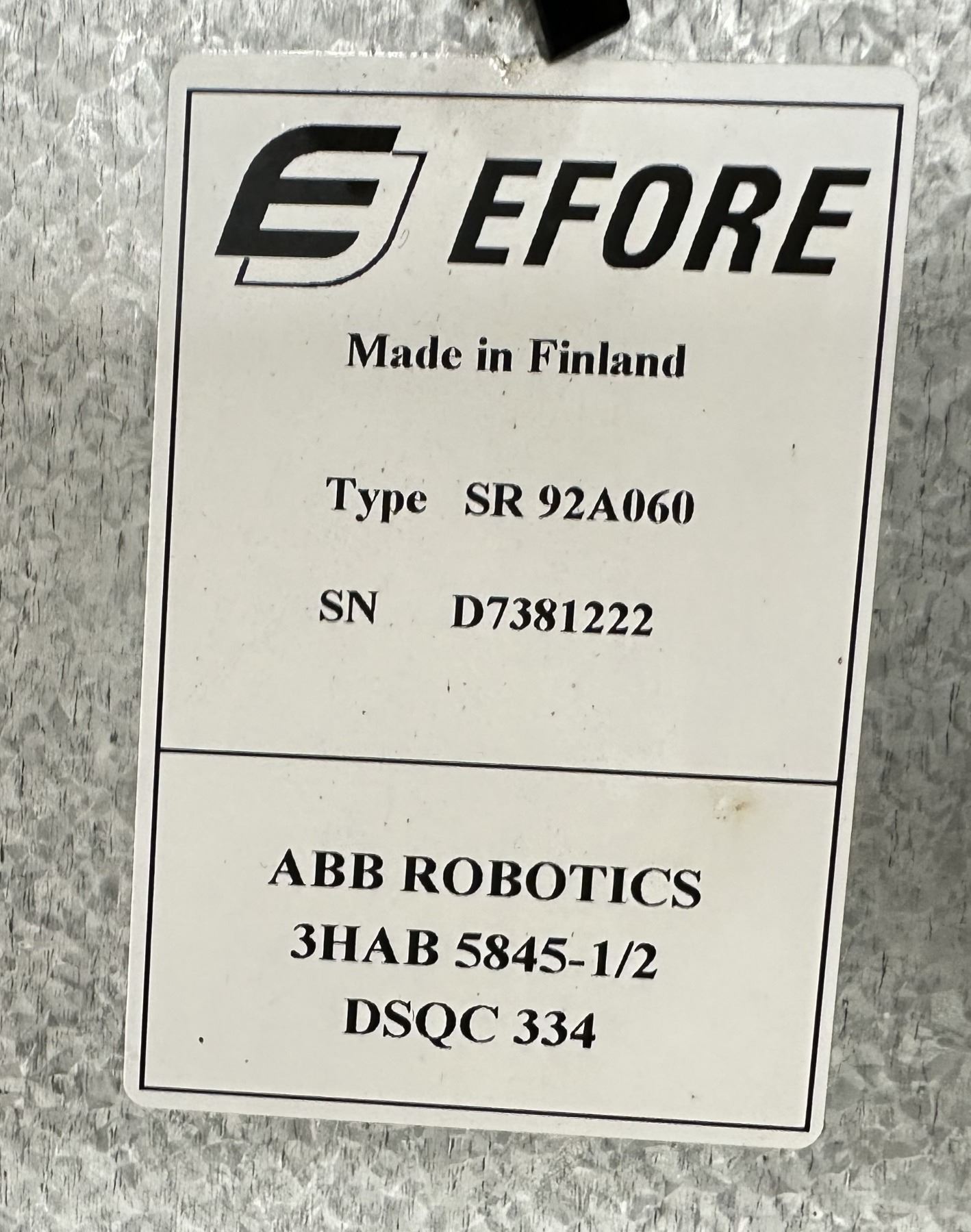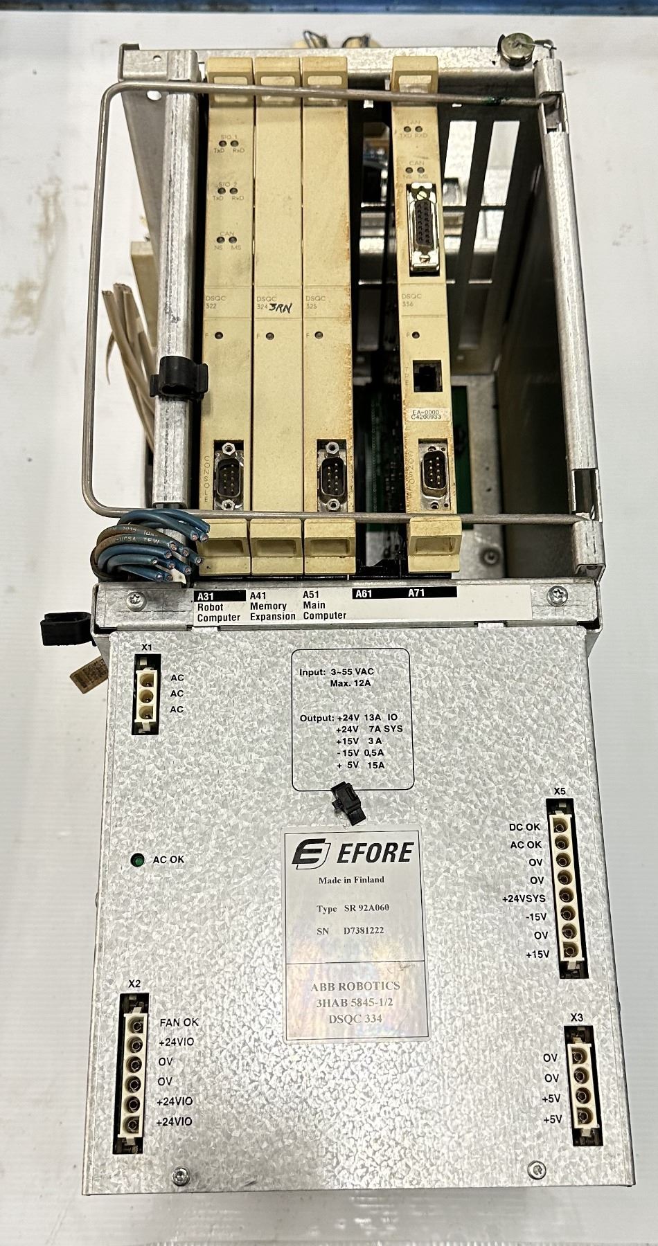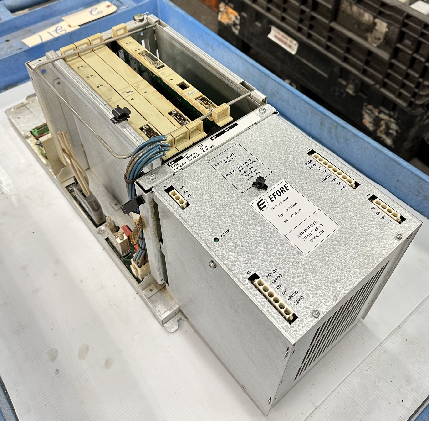 ABB #3HAB 5845-1/2/DSQC 334 Type SR 92A060 Efore Power Supply w/Back Panel Control Board #3HAB6372-1