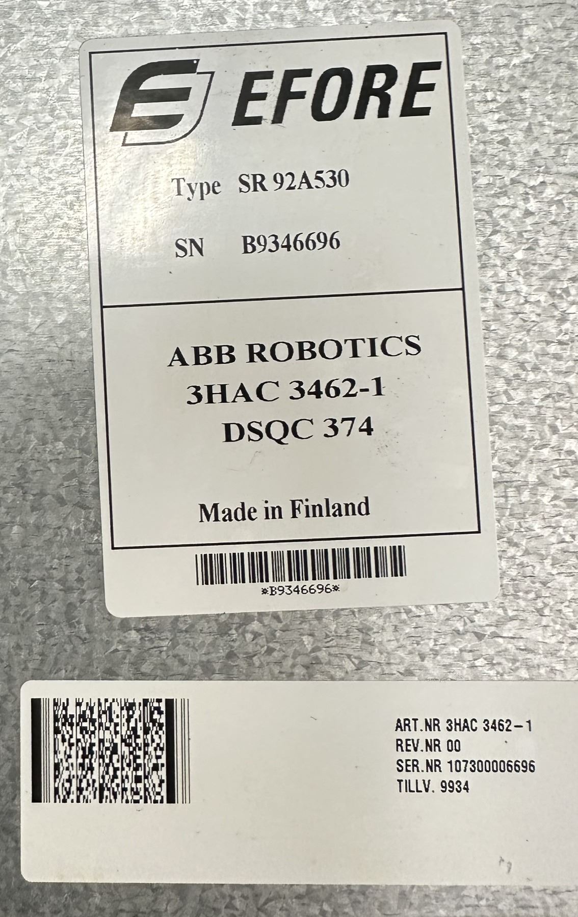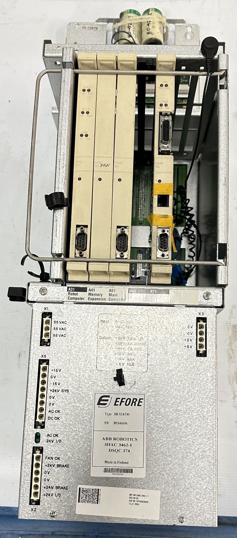 ABB #3HAC 3462-1/DSQC 374 Type SR 92A530 Efore Power Supply w/Back Panel Control Board #3HAC2424-1