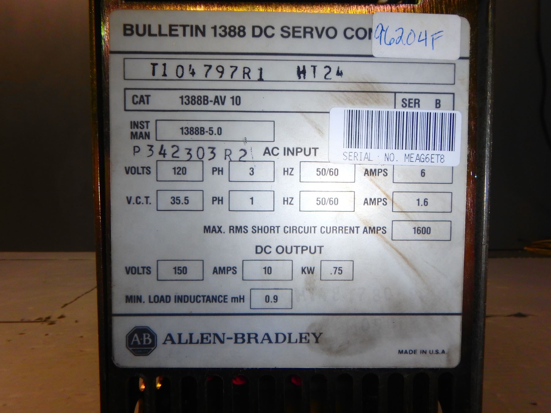ALLEN BRADLEY 1388B-AV 10 BULLETIN 1388 DC SERVO CONTROLLER