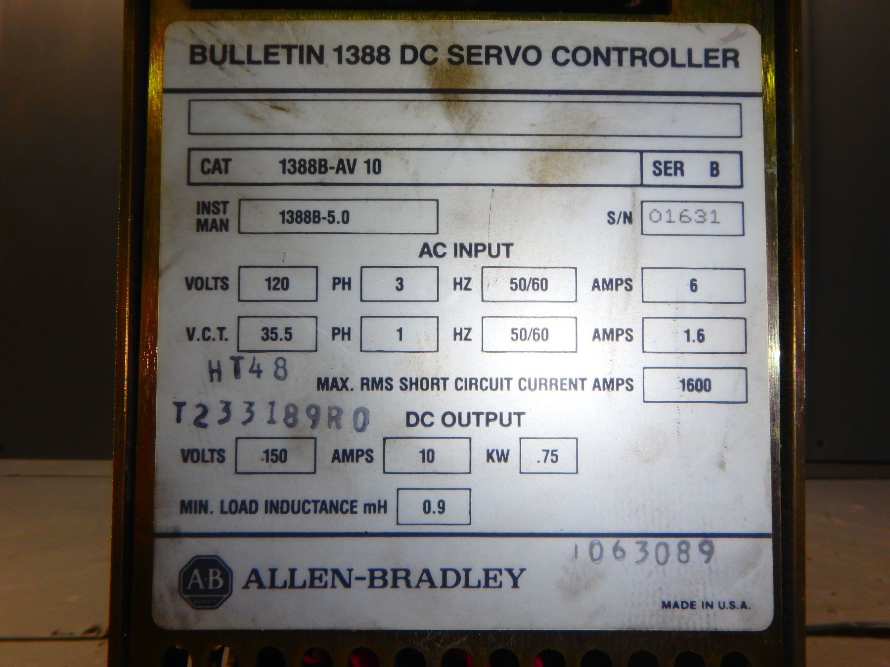 ALLEN BRADLEY 1388B-AV 10 BULLETIN 1388 DC SERVO CONTROLLER