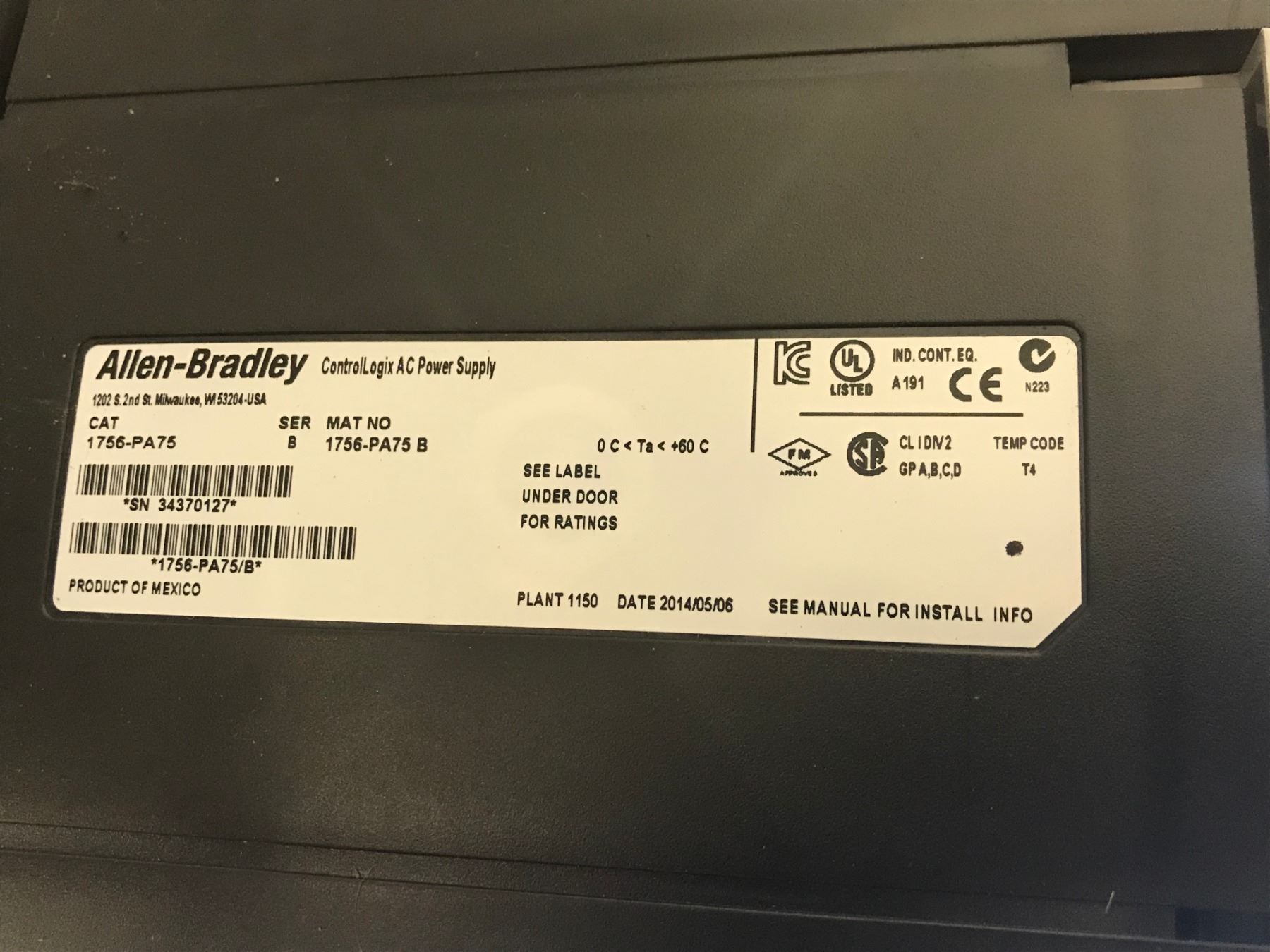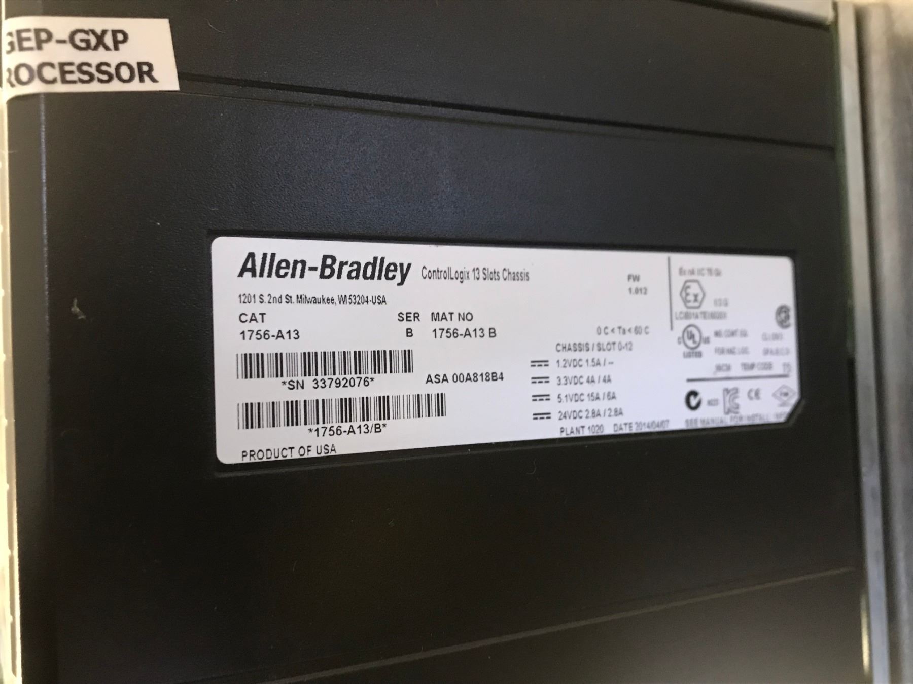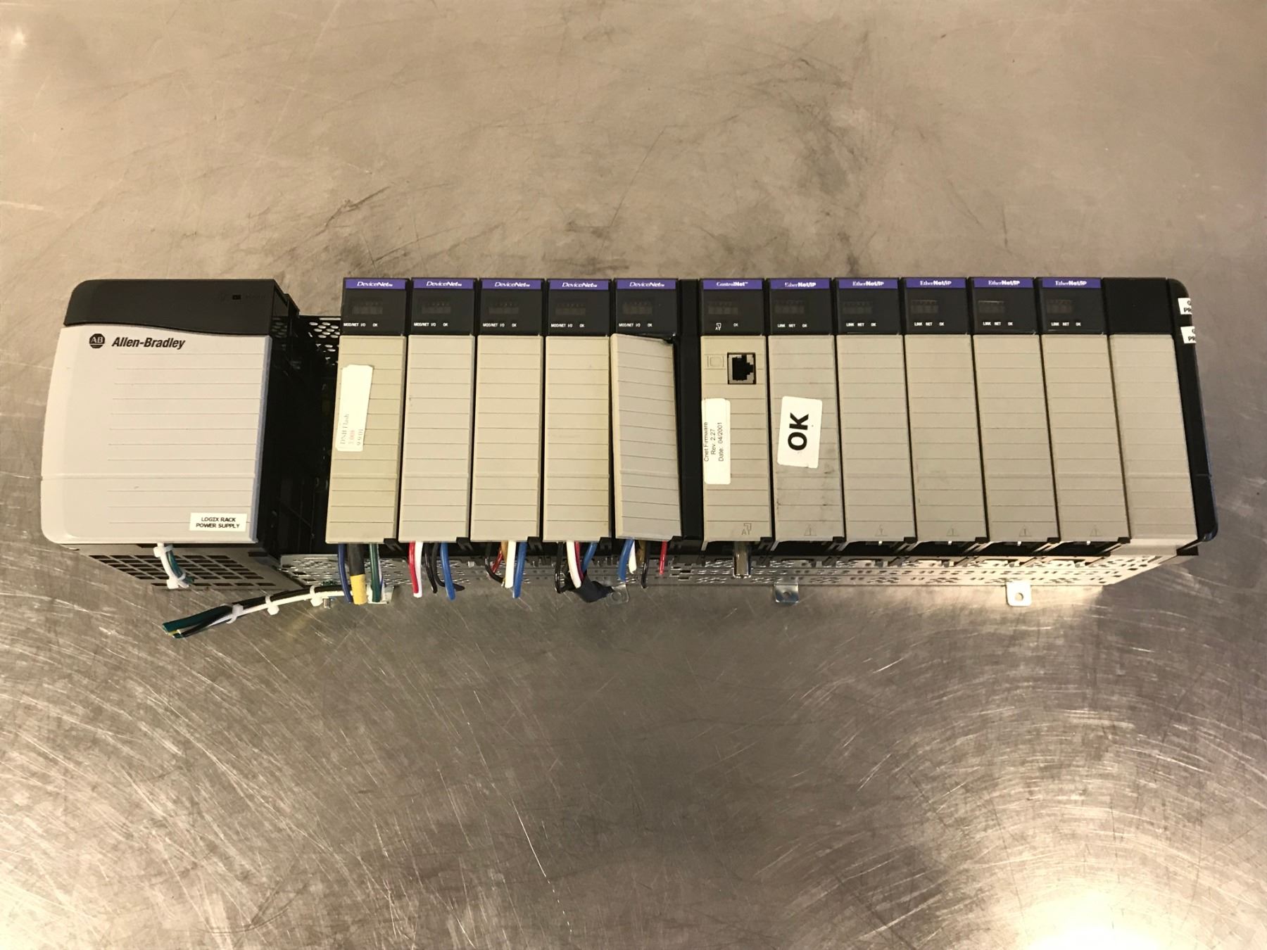 ALLEN BRADLEY 1756-A13 13 SLOT CHASSIS W/ POWER SUPPLY & ENET / IP MODULES
