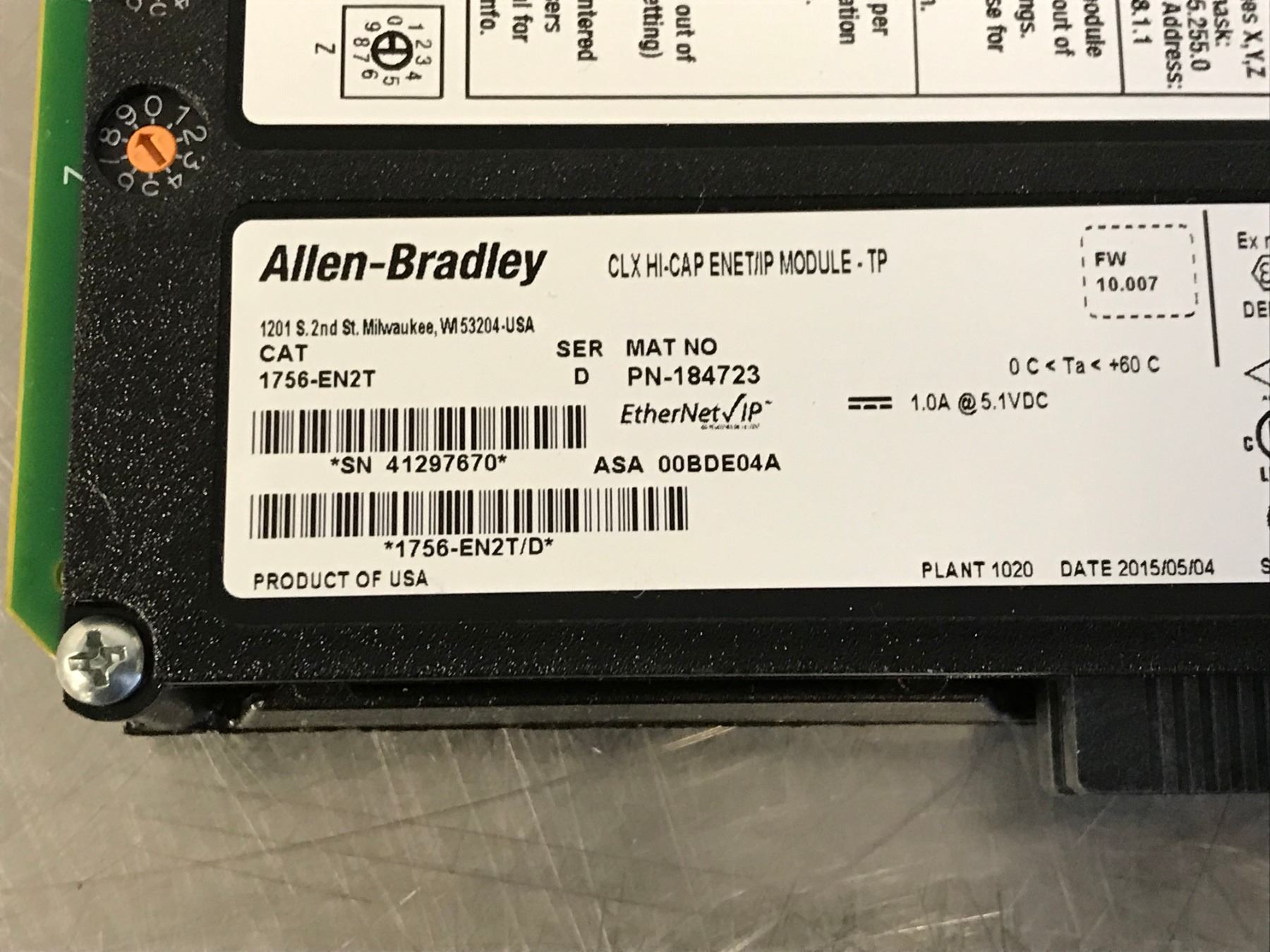 ALLEN BRADLEY 1756-EN2T ETHERNET BRIDGE MODULE