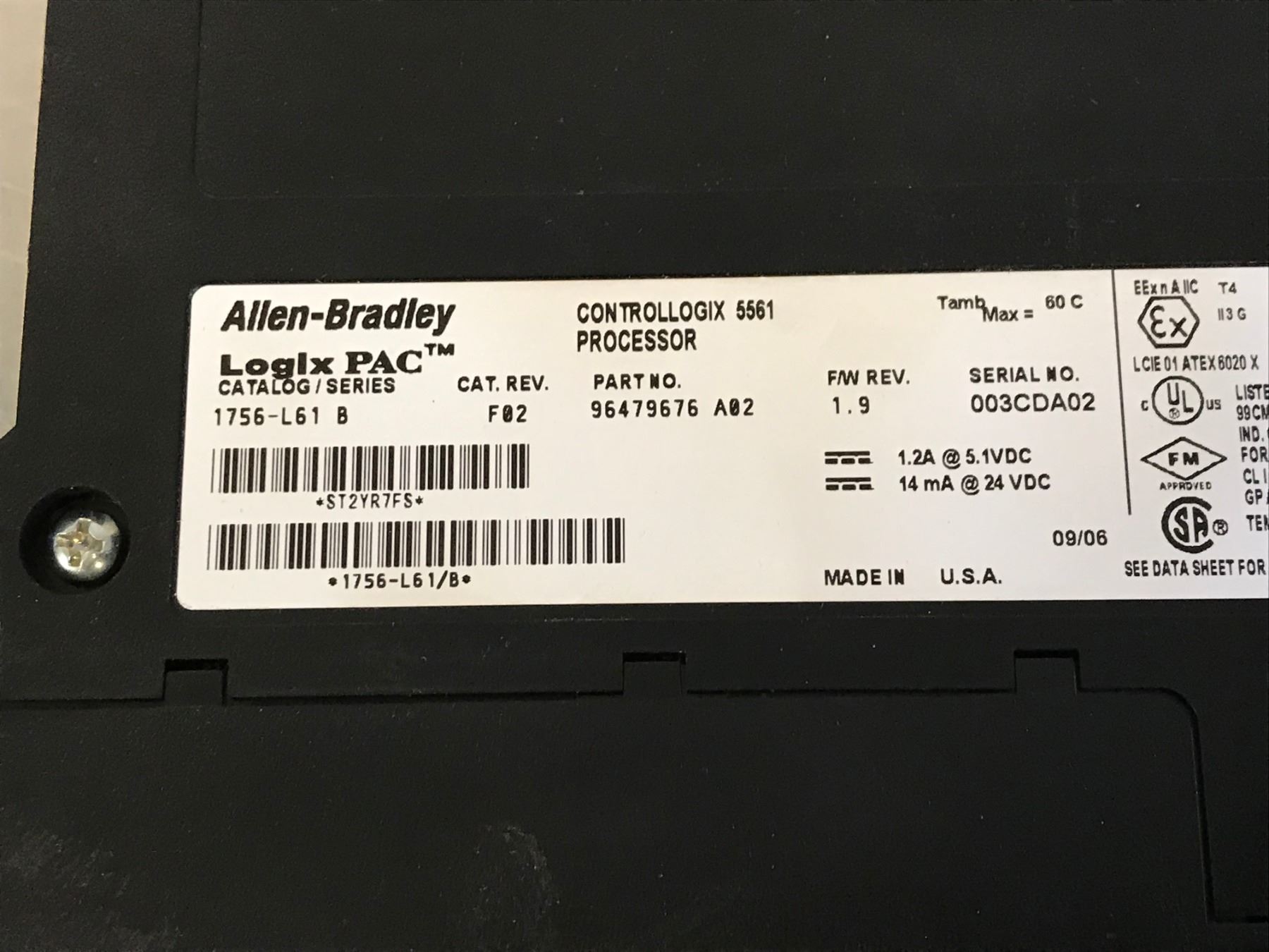ALLEN BRADLEY 1756-L61 B CPU MODULE