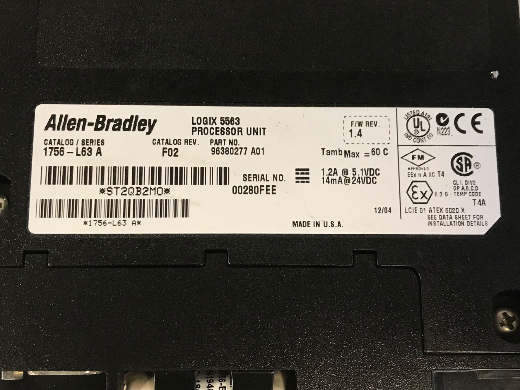 ALLEN BRADLEY 1756-L63 A CPU MODULE
