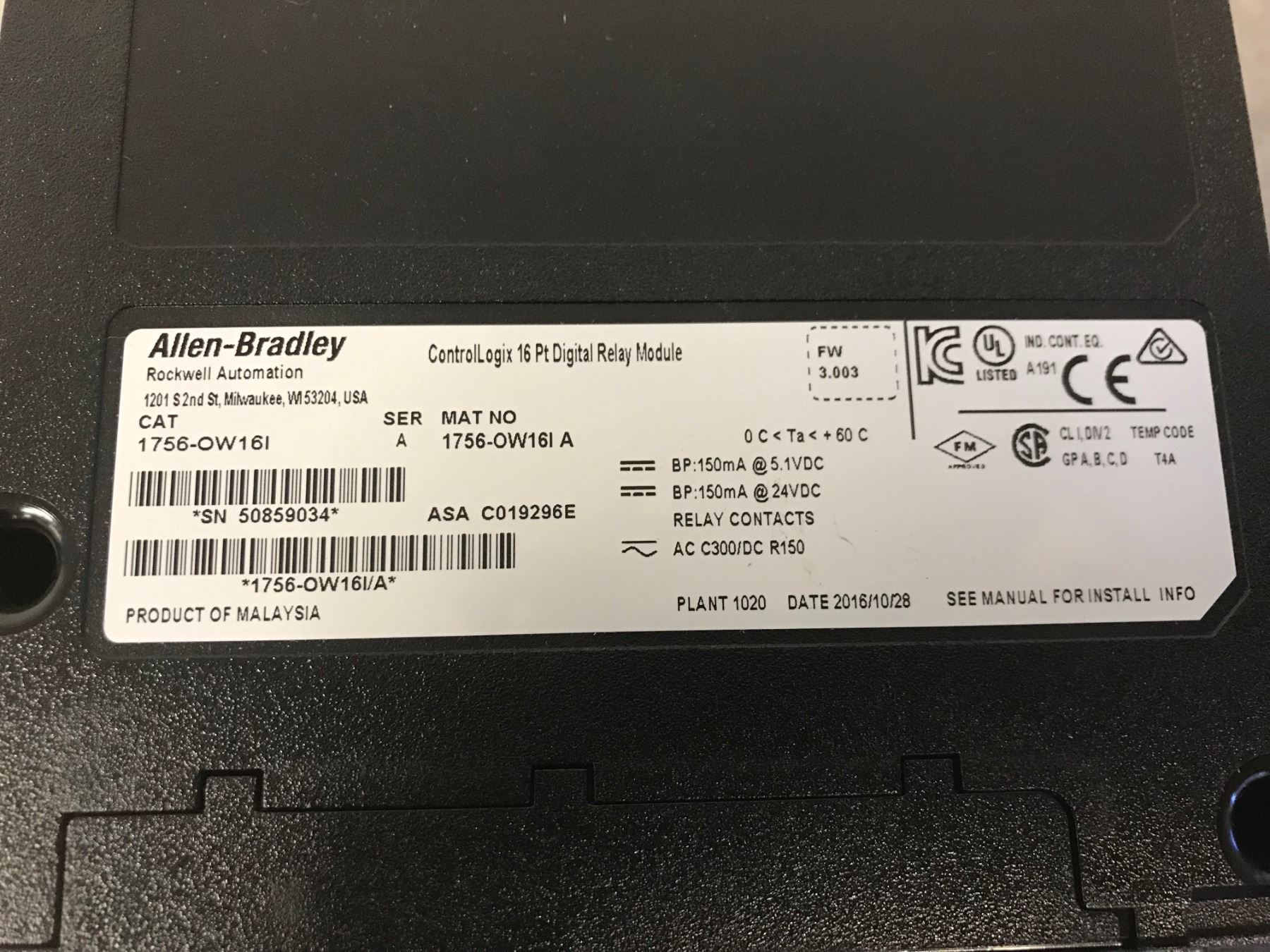 ALLEN BRADLEY 1756-OW16I RELAY MODULE