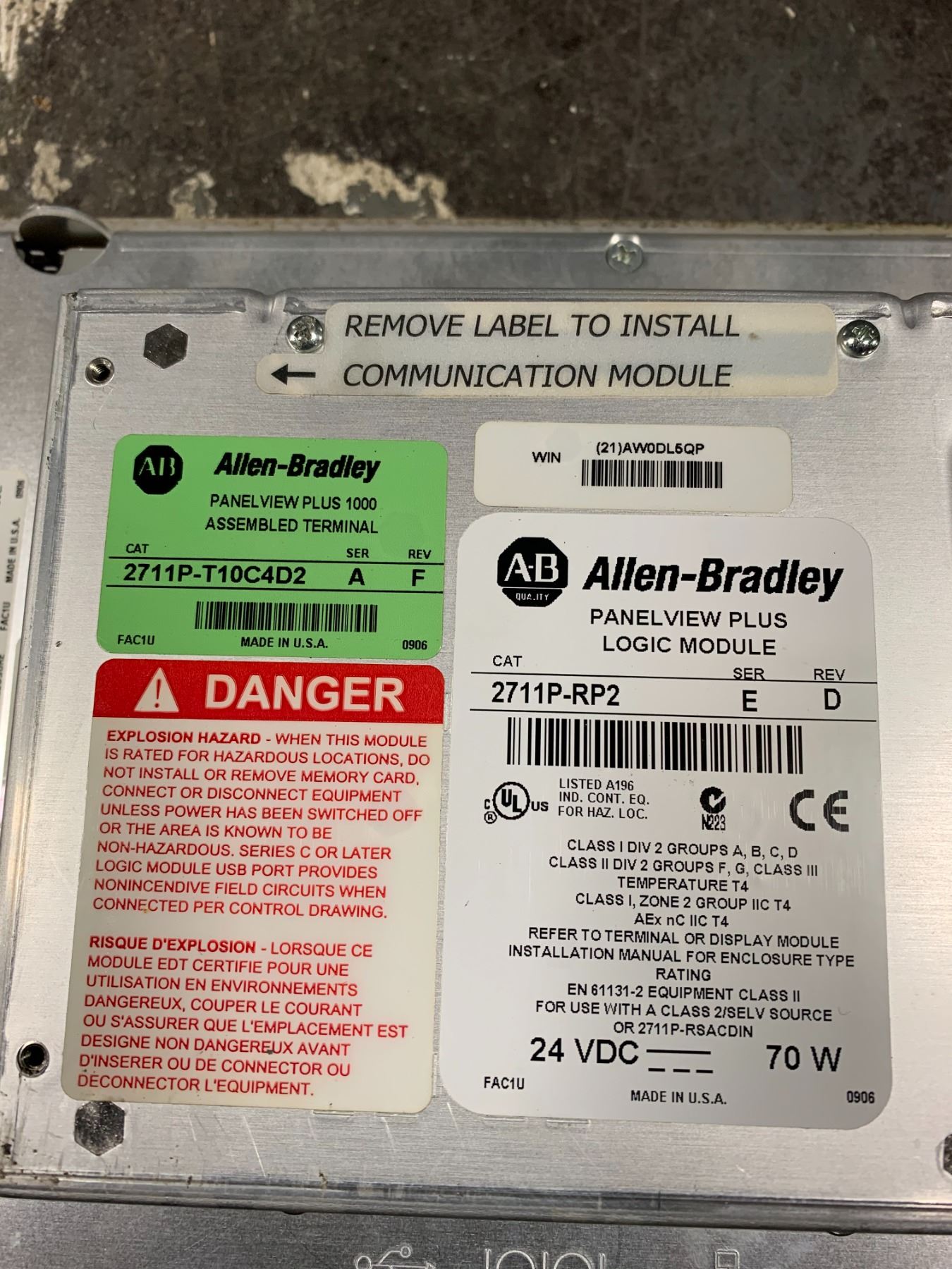 ALLEN-BRADLEY 2711P-RDT10C PANELVIEW PLUS 1000 COLOR TOUCH DISPLAY_2711P-RP2 LOGIC MODULE