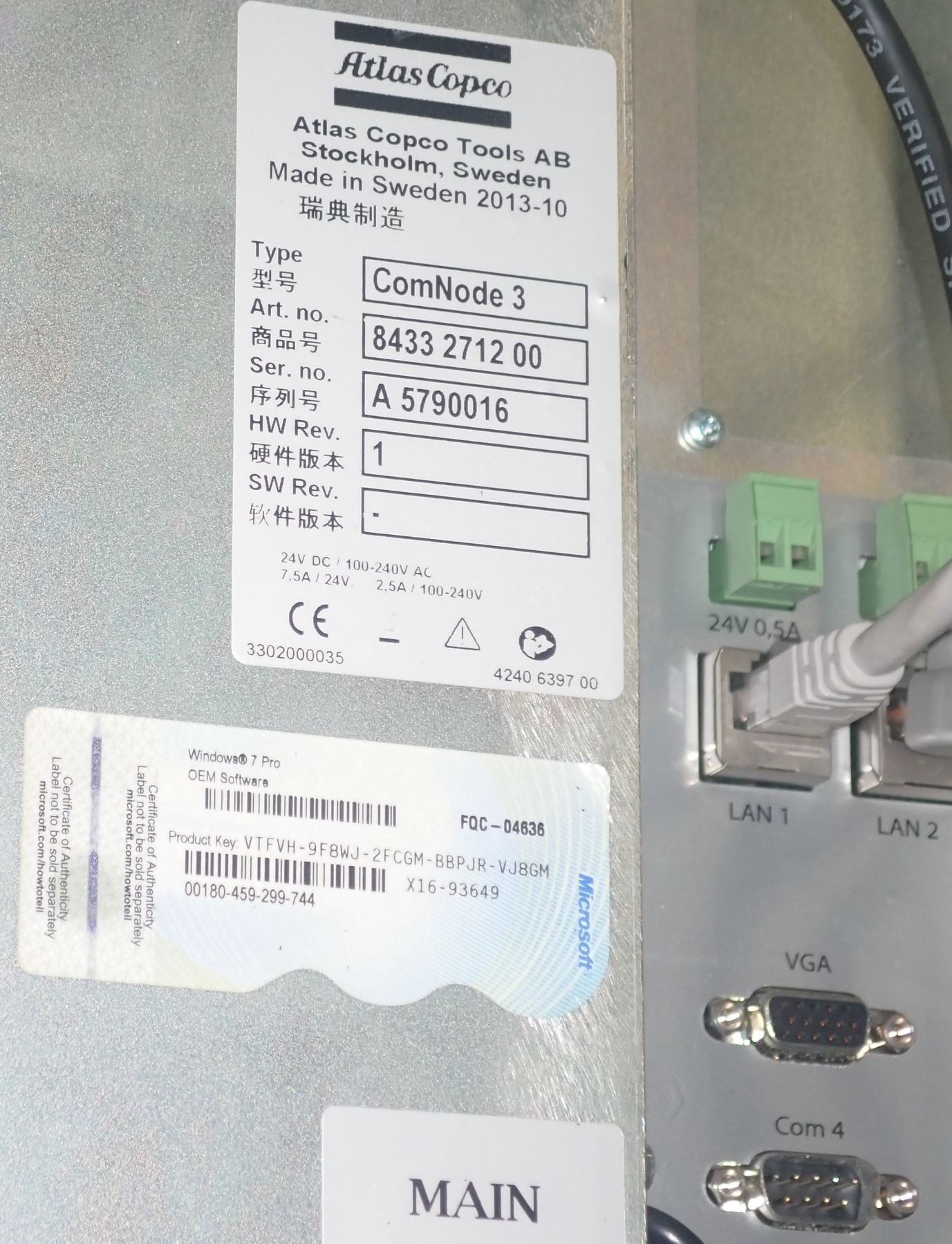 ATLAS COPCO COMNODE 3 #8433 2712 00 INDUSTRIAL PC