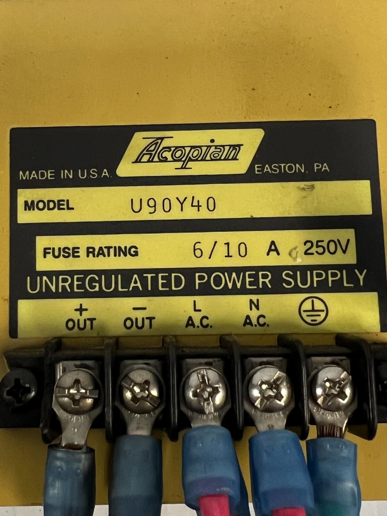 Acopian #U90Y40 Unregulated Power Supply