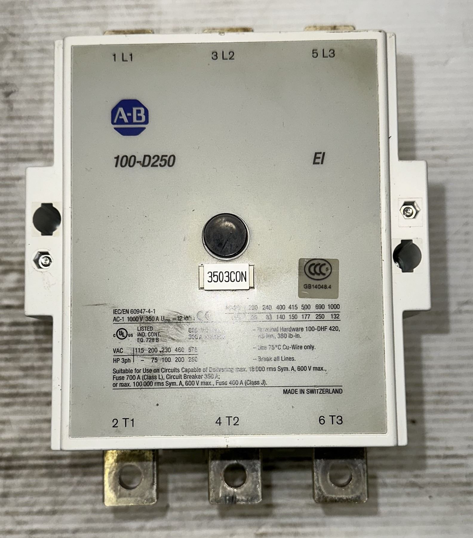 Allen Bradley #100-D250 Contactor