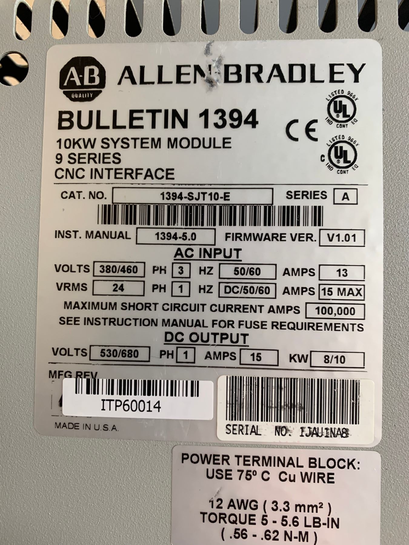 Allen-Bradley 1394-SJT10-E Bulletin 1394 CNC Interface