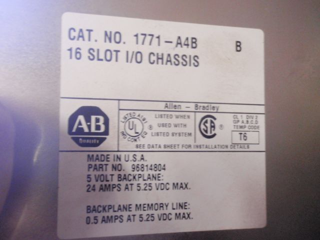 Allen Bradley 16 Slot Chassis #1771-A4B with (5) 1771-OA (6) 1771-IA (1) 1772-LX (1) 1771-IA