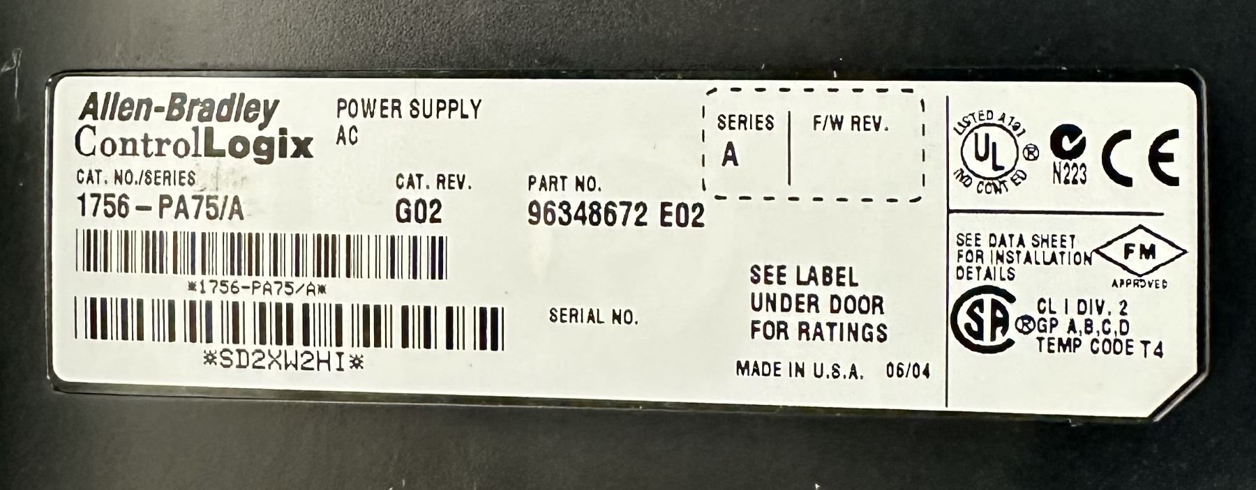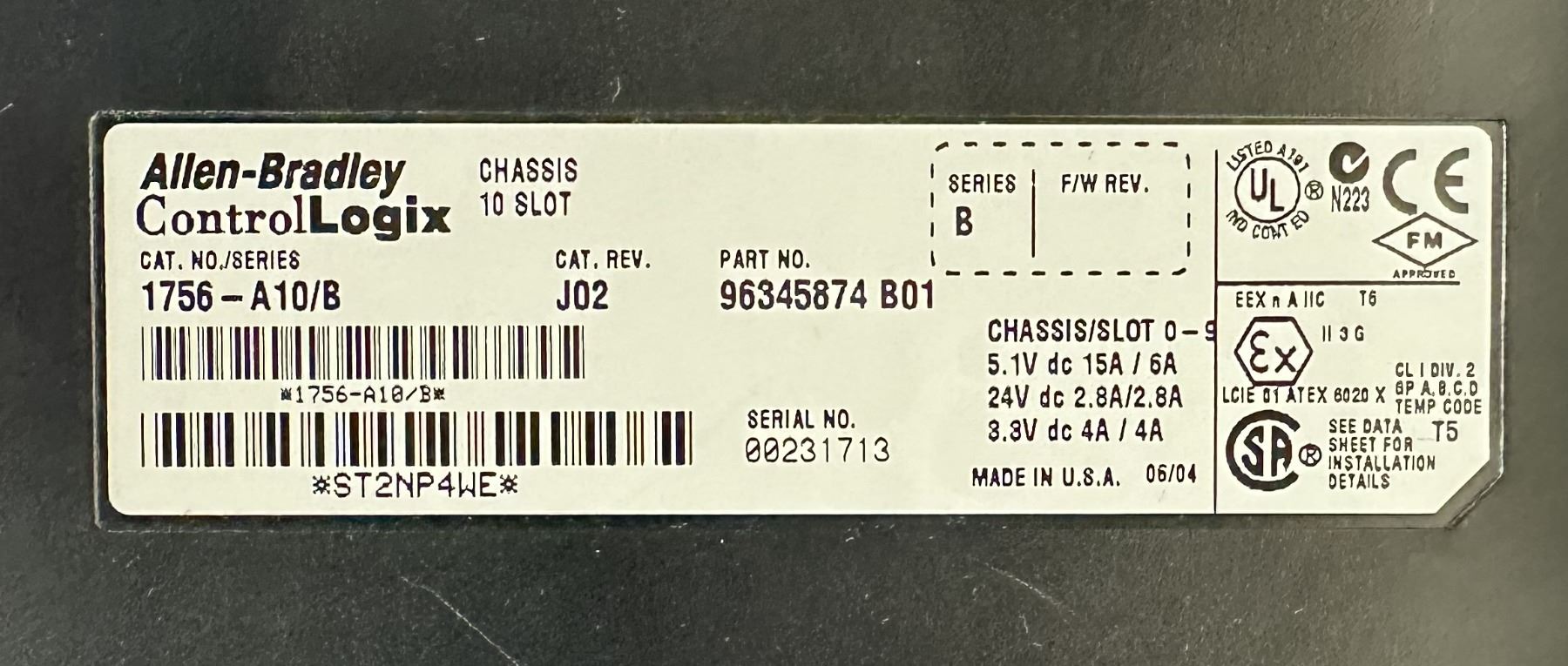 Allen Bradley #1756-A10/B 10 Slot Chassis w/Power Supply & Modules