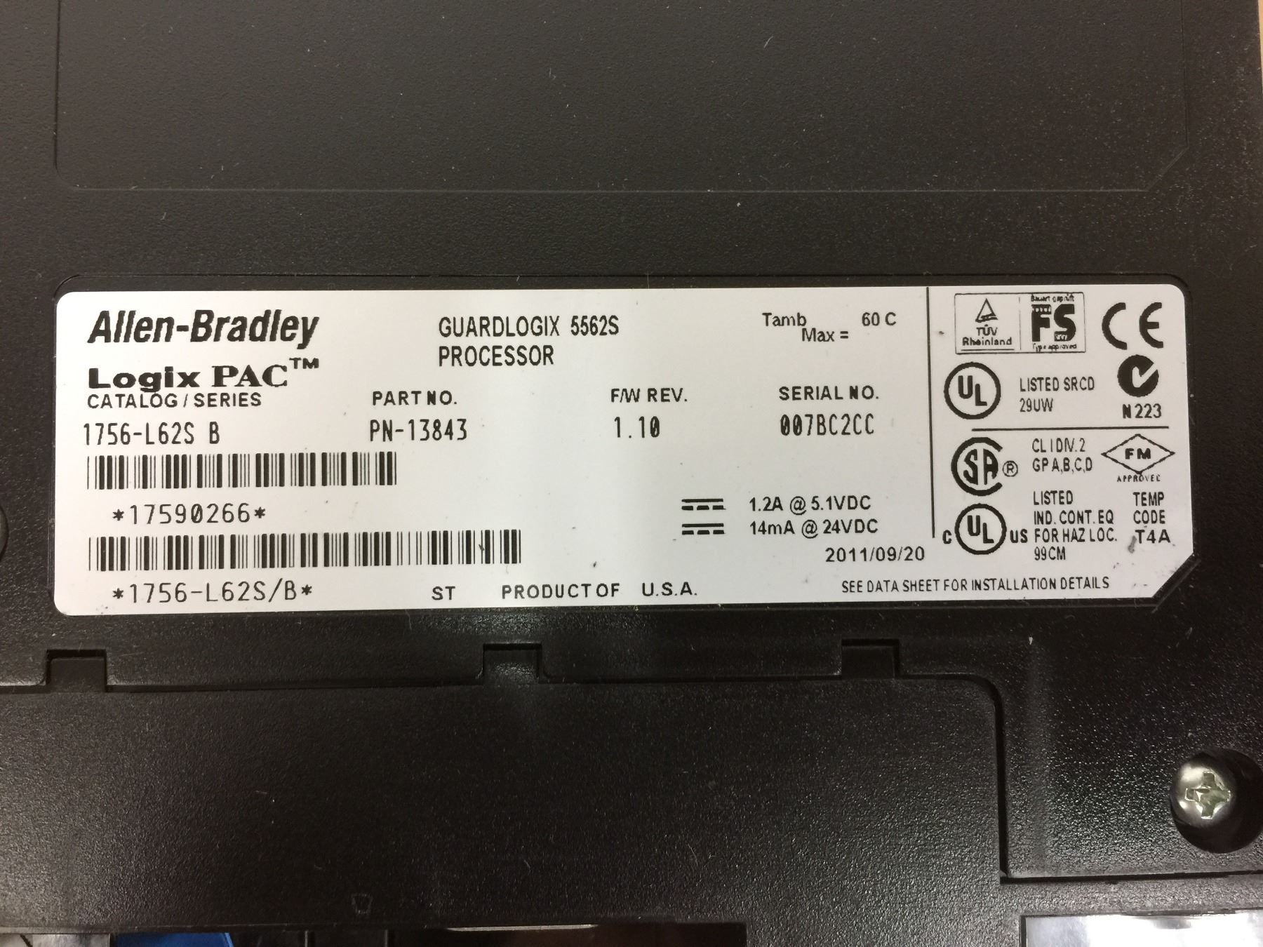 Allen Bradley 1756-L62S B Processor Module