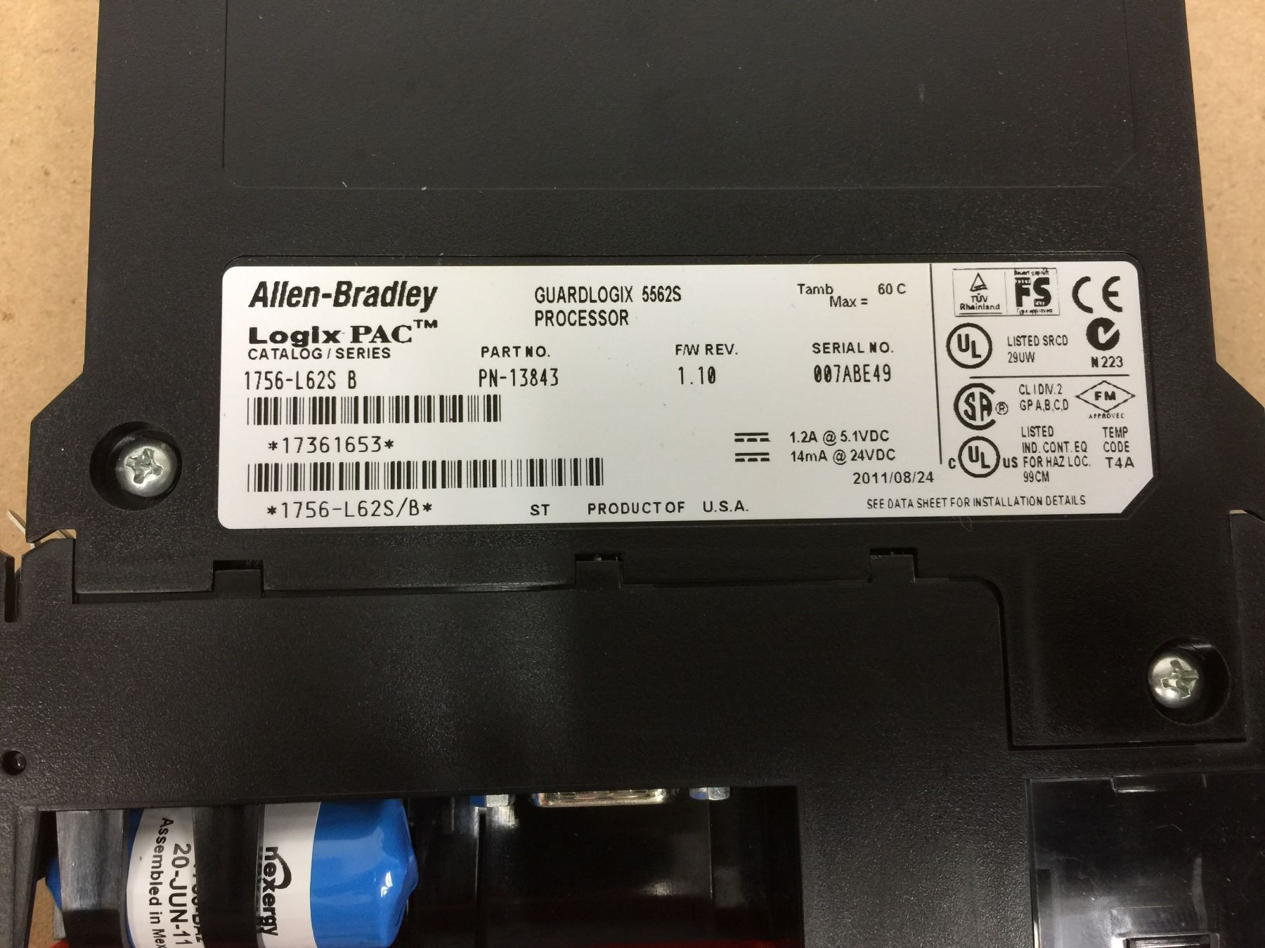 Allen Bradley 1756-L62S B Processor Module