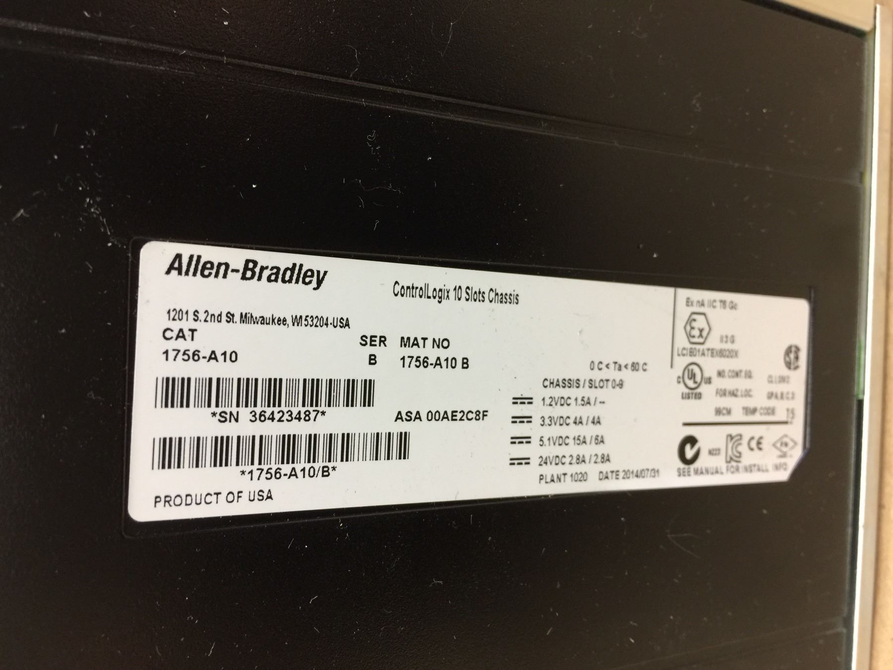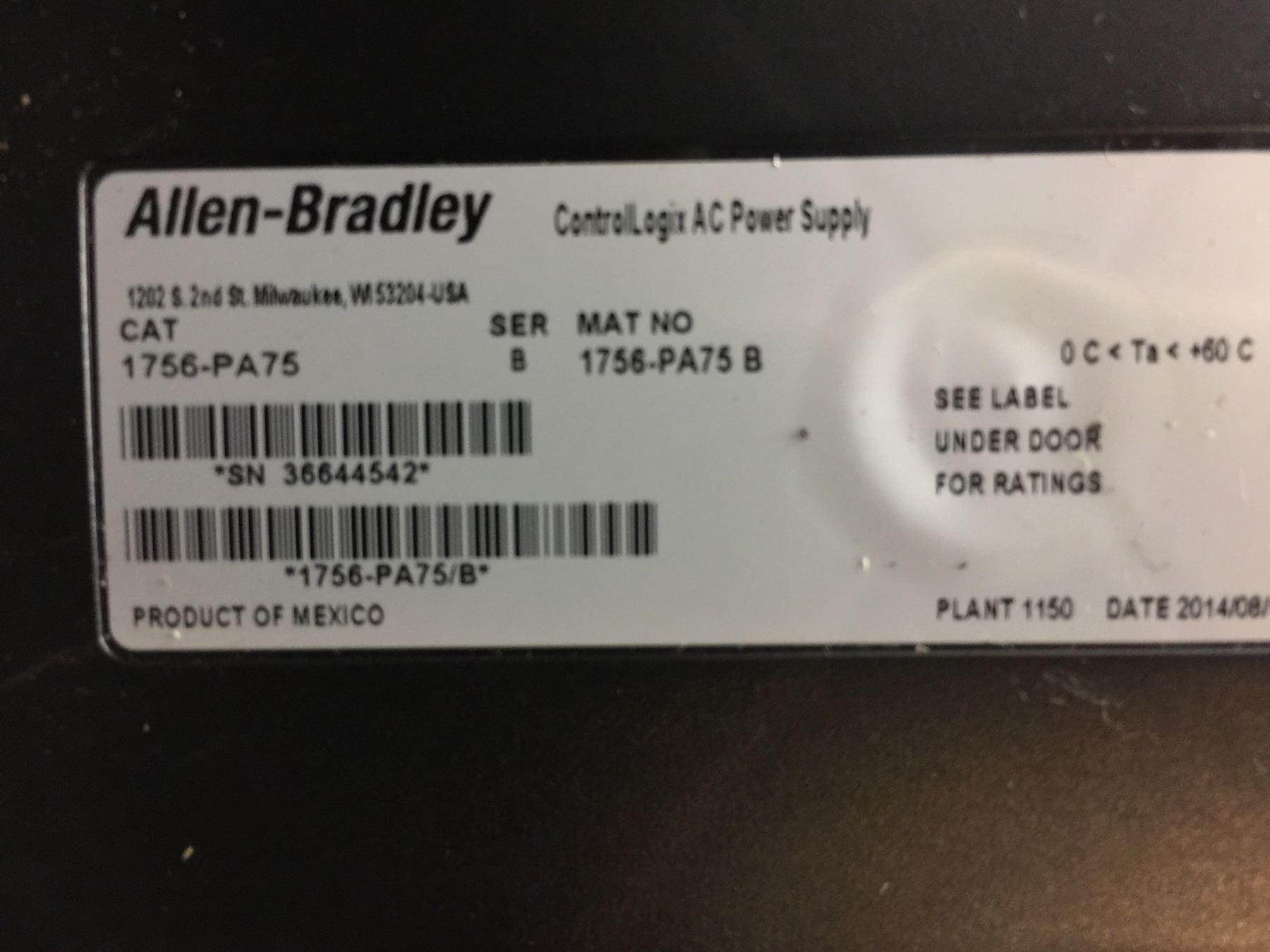 Allen Bradley 1756-PA75 Power Supply AC w/ 1756-A10 10 SLOTS CHASSIS