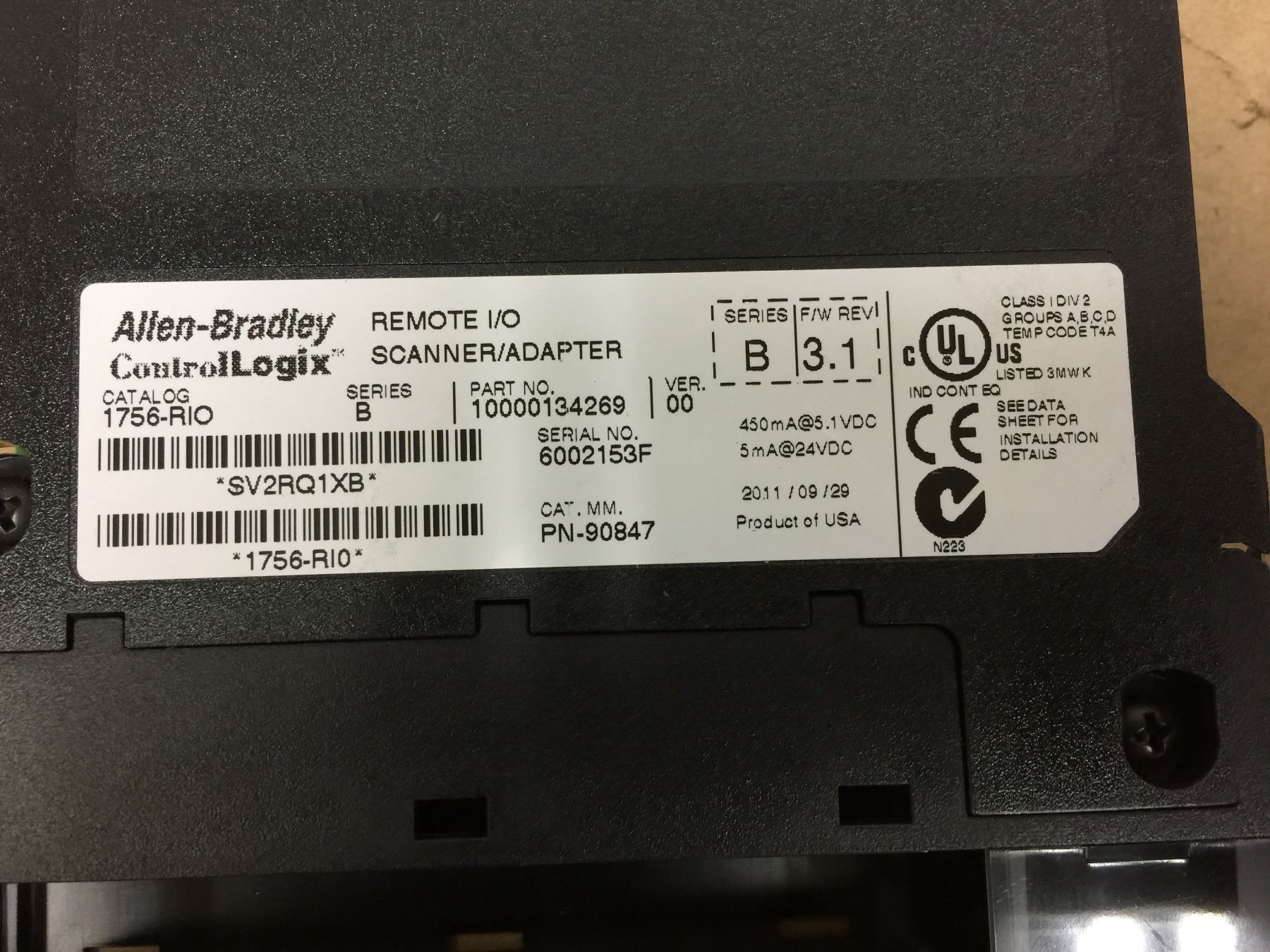 Allen Bradley 1756-RIO Remote I/O Scanner/Adapter