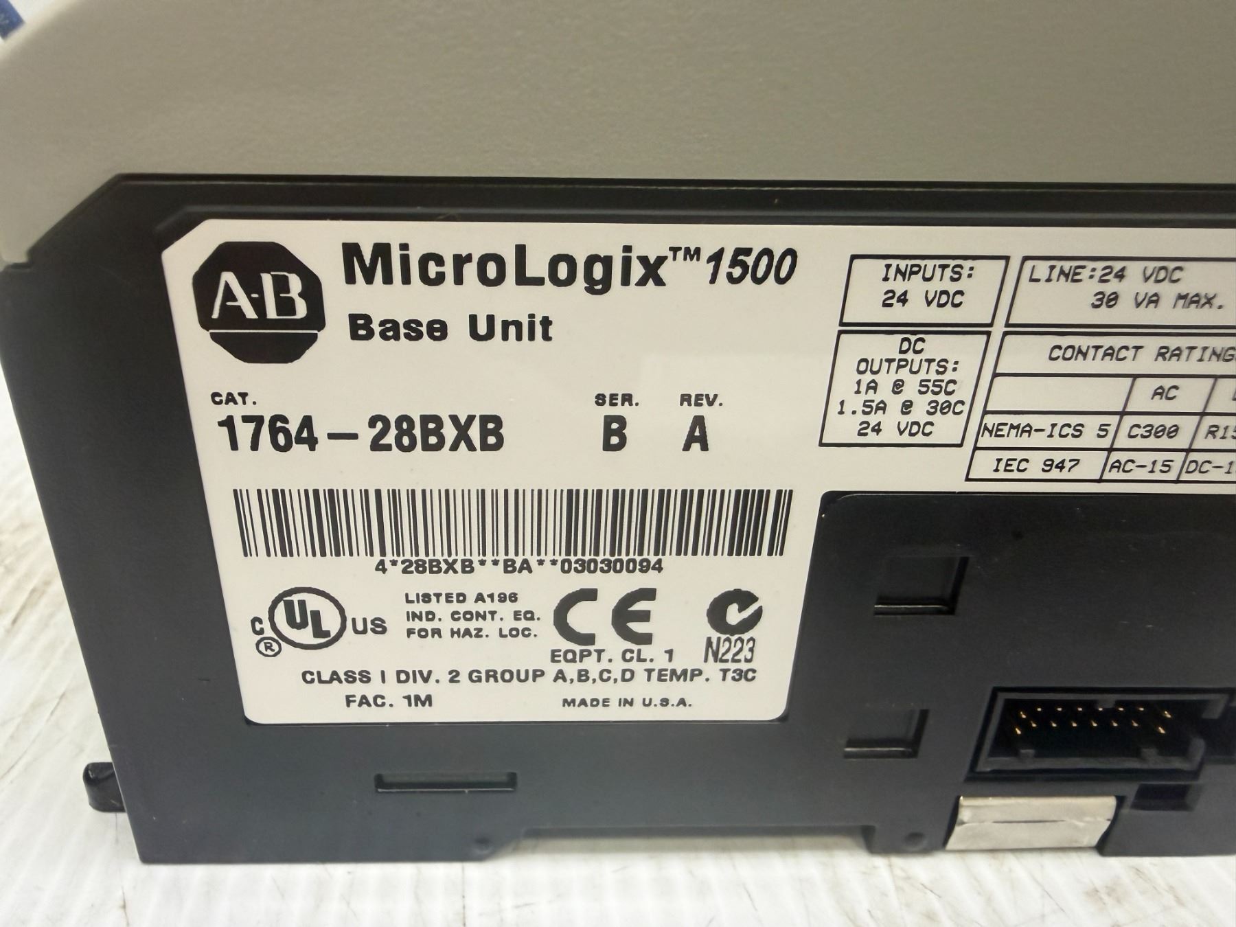 Allen-Bradley #1764-28BXB MicroLogix 1500 w/ #1769-OB16, & (3) #1769-IQ16 Modules