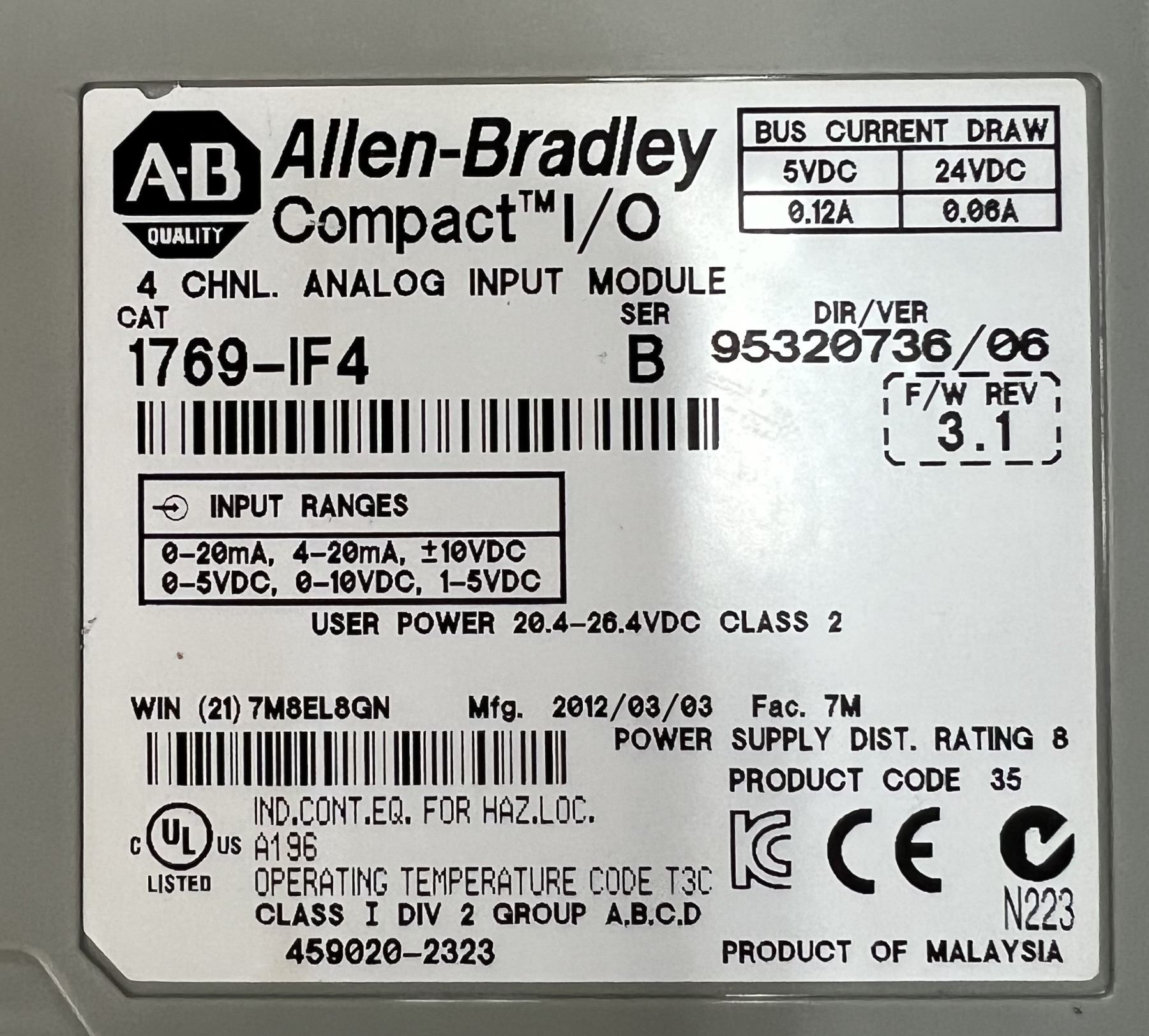 Allen Bradley #1769-IF4 Analog Input Module
