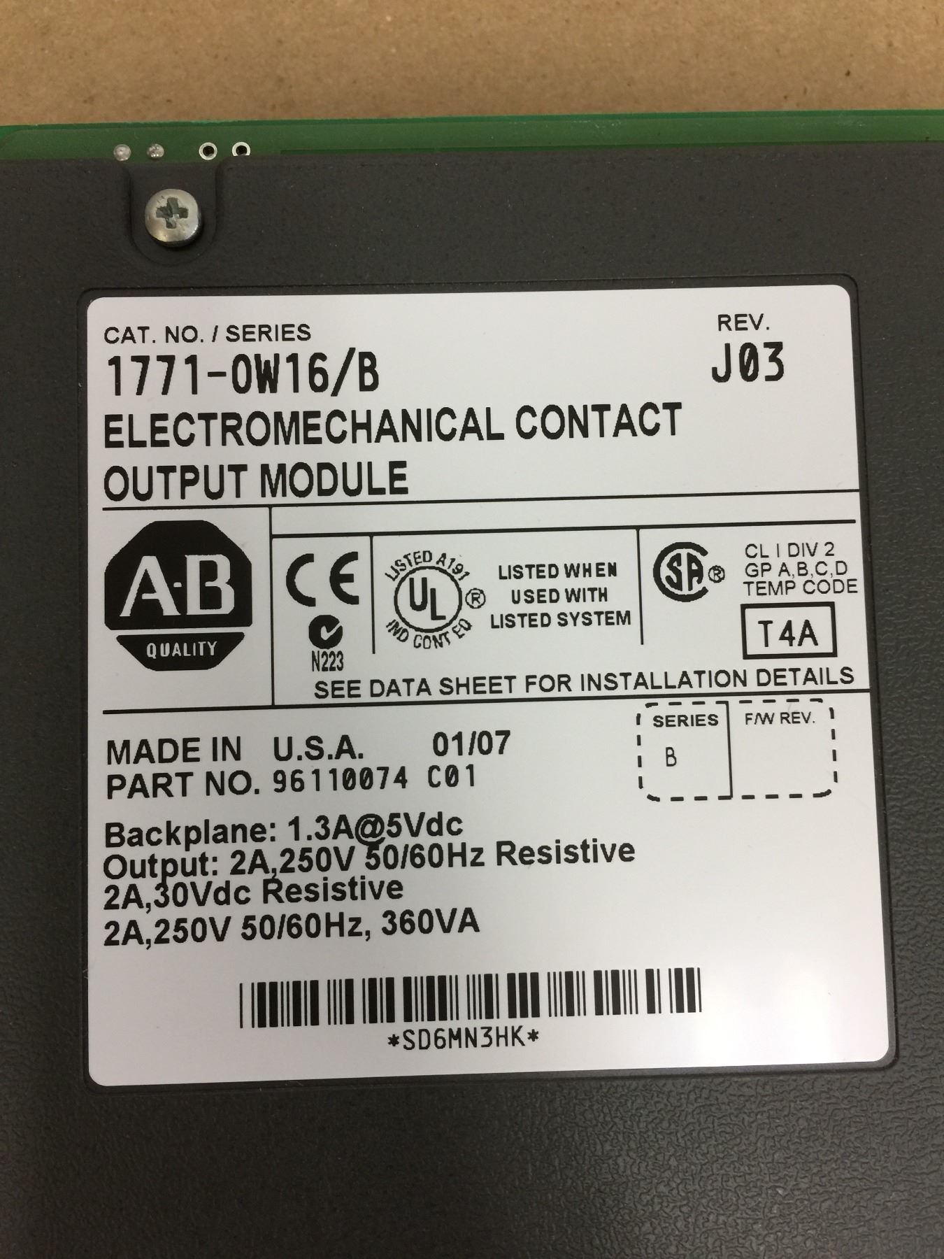 Allen Bradley 1771-0W16/B Electromechanical Contact Output Module
