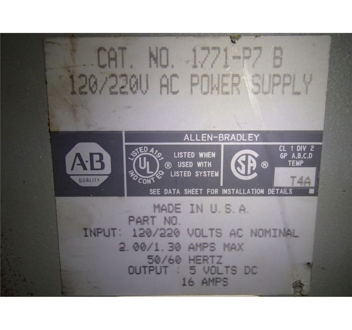 Allen Bradley 1771-P7 B Power Supply